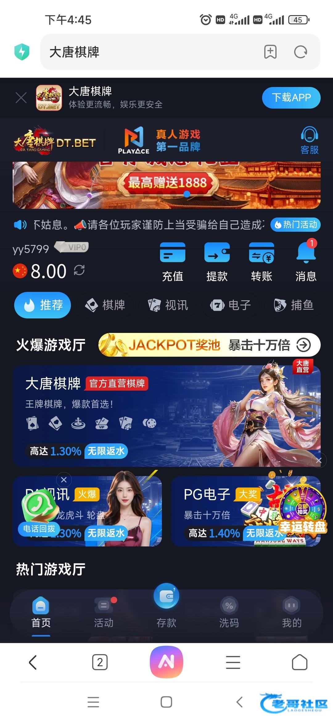 我是接到电话了,进去找客服,就说接到电话j6国际和大唐合并了,接到电话送彩金,8元。DT.BET
