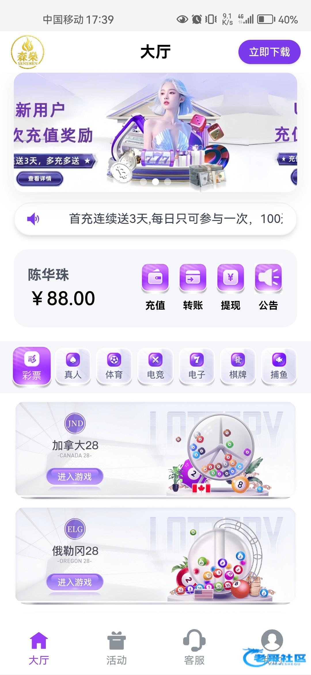 有个毛啊,app下载自动注册,彩金毛线啊,都没有,大家别去了