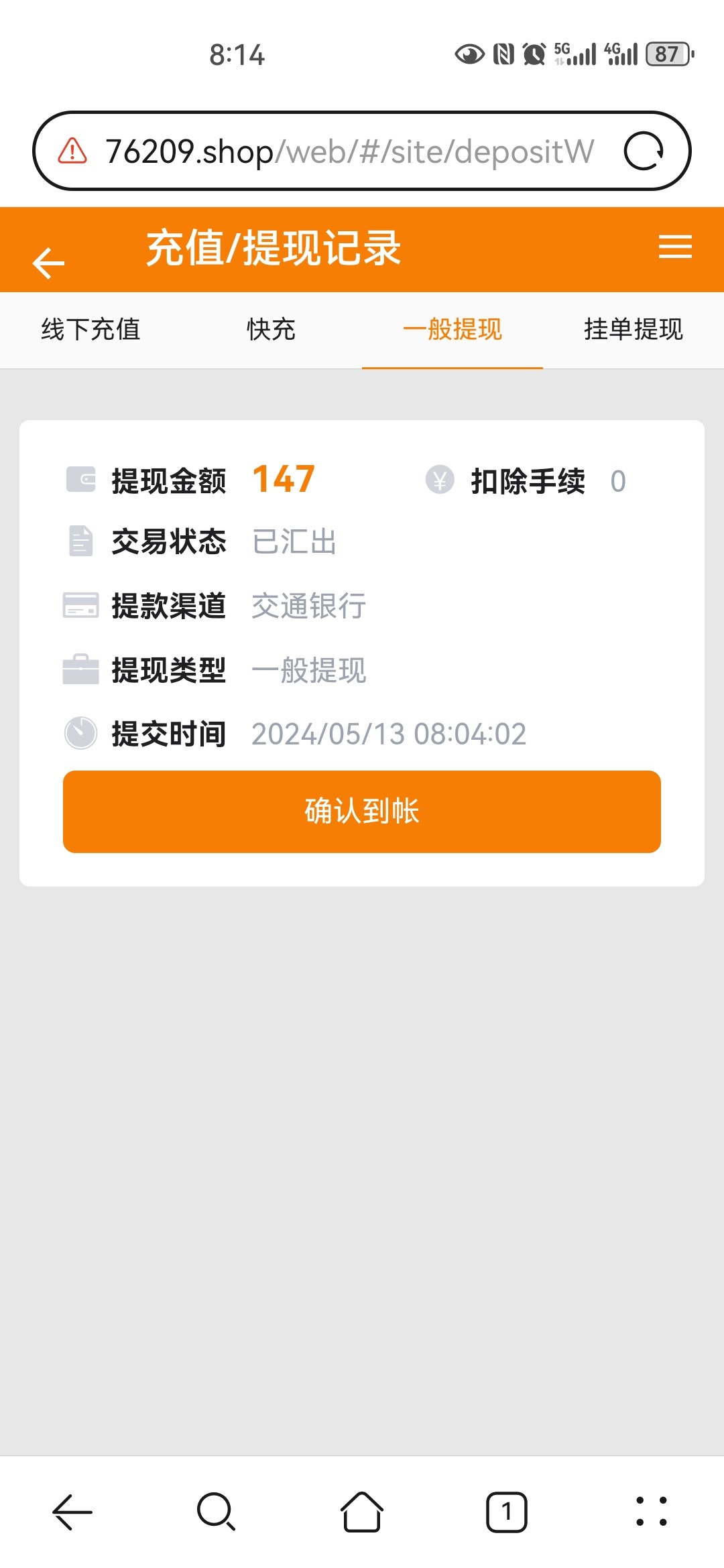 到账了
