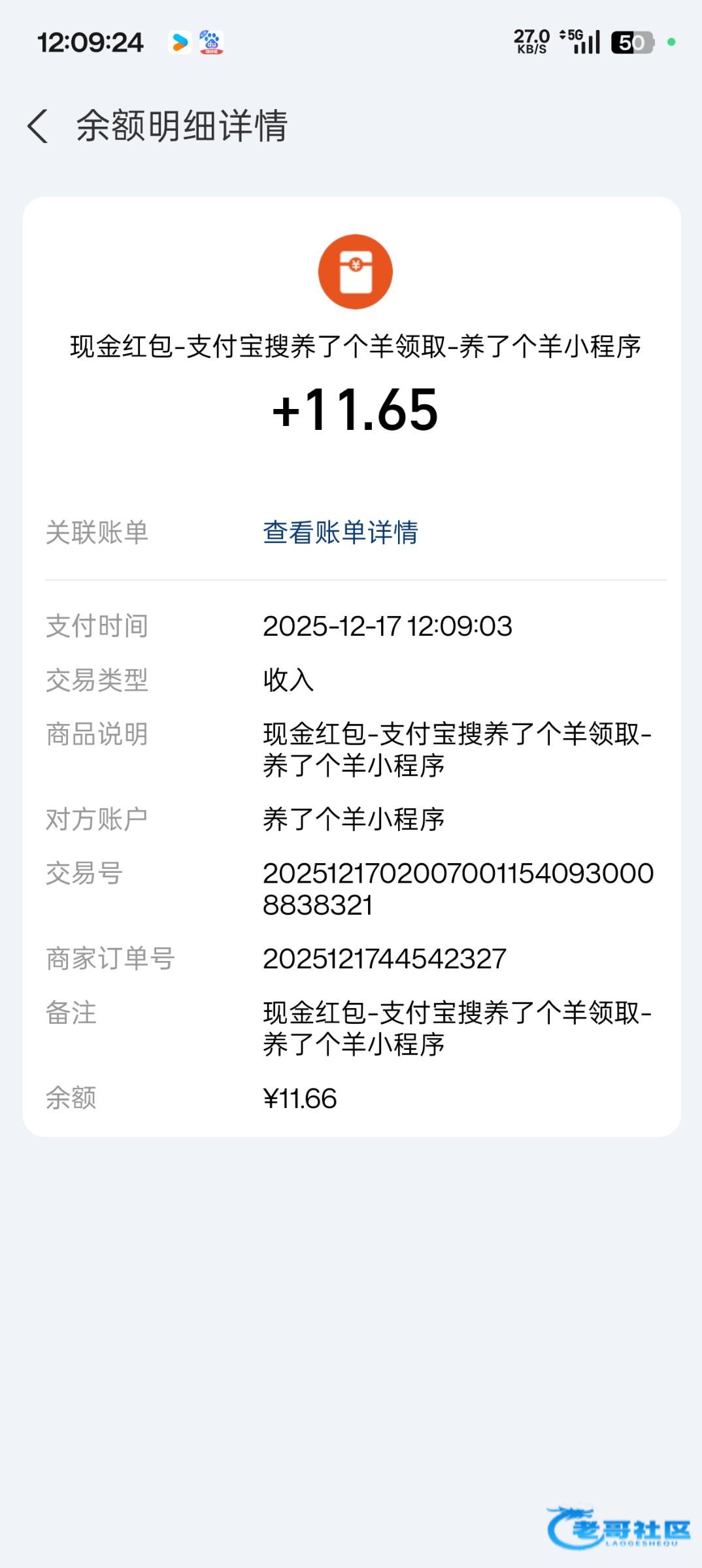 支付宝搜养了个羊 左上角领红包 可以白嫖饭钱 多号多撸