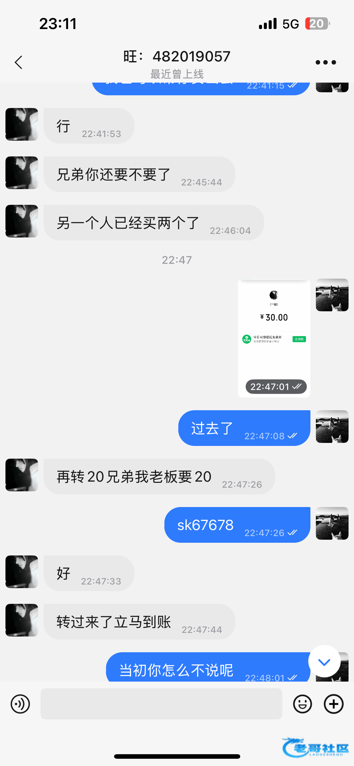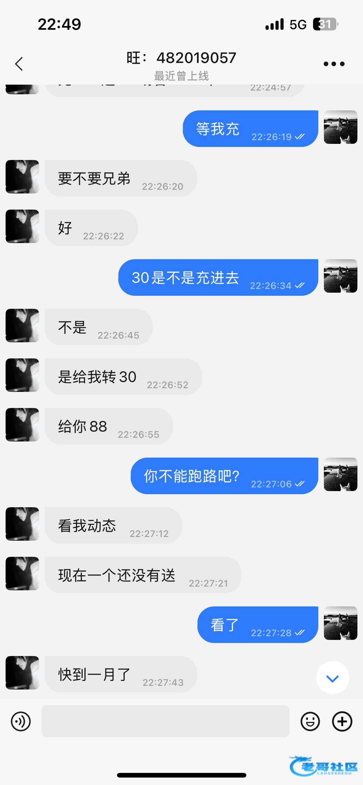 买30扶持送88 结果钱转过去就跑路了 避雷兄弟们 不要被这个诈骗犯骗了 诈骗犯旺旺号482019057