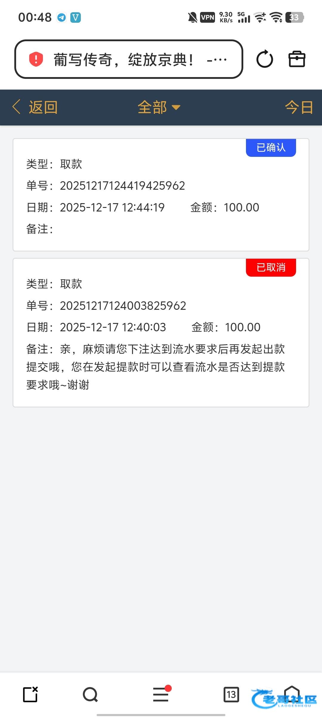 维护彩金提了100