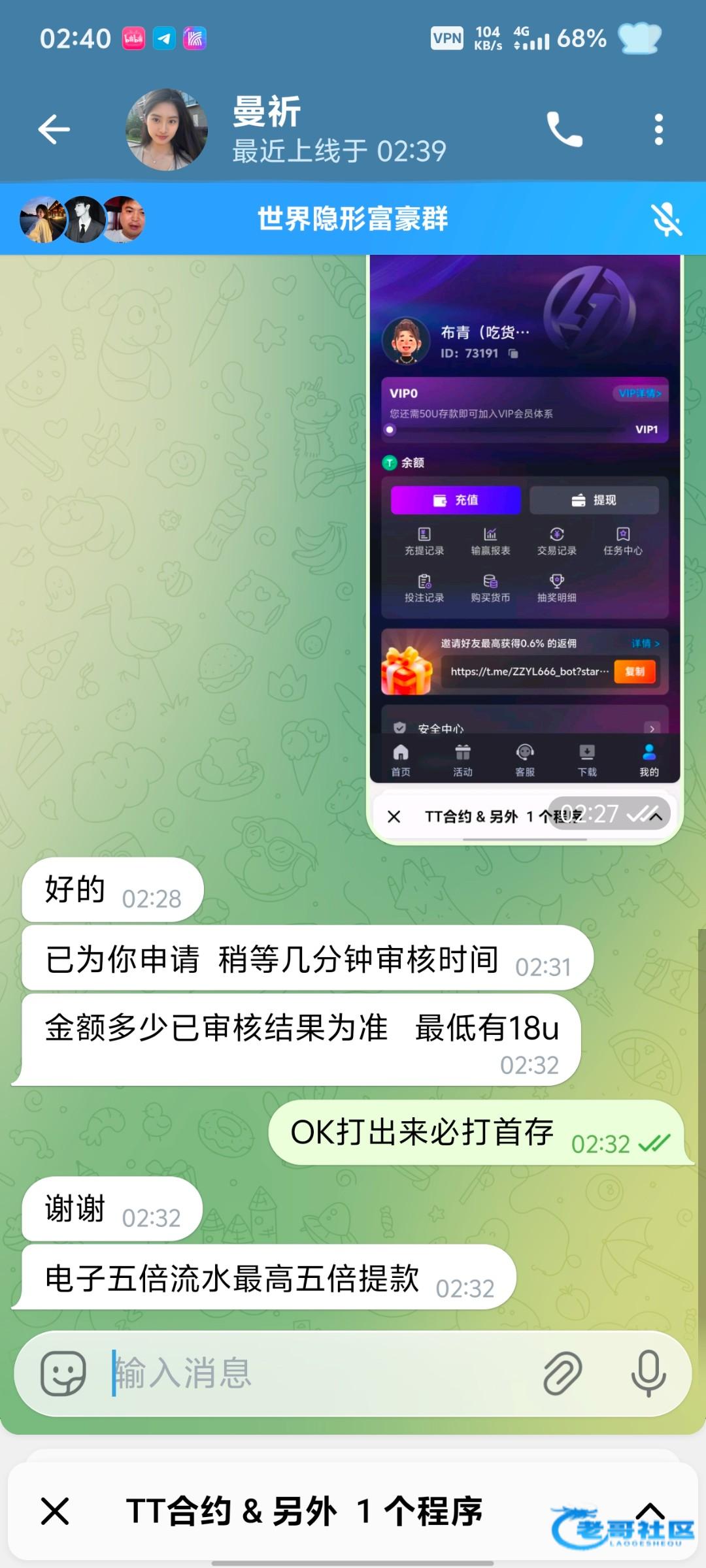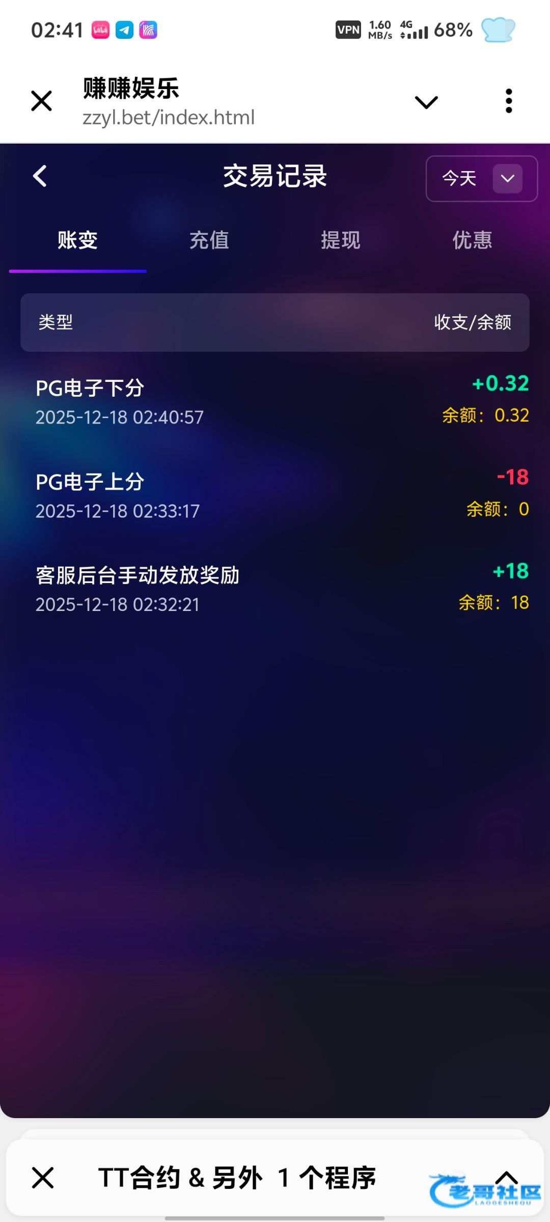 今天有代理找我,领了28u,转了0.4一把转了90次挂壁,碧水没有