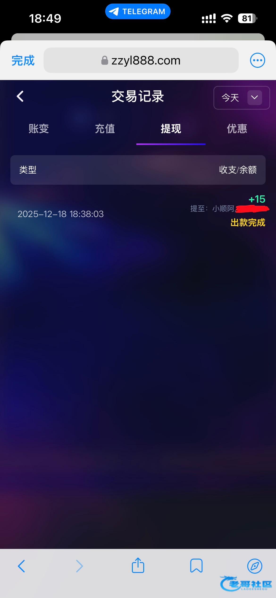 这18U彩金一点流水没有 好在流水打够了提了15U秒到