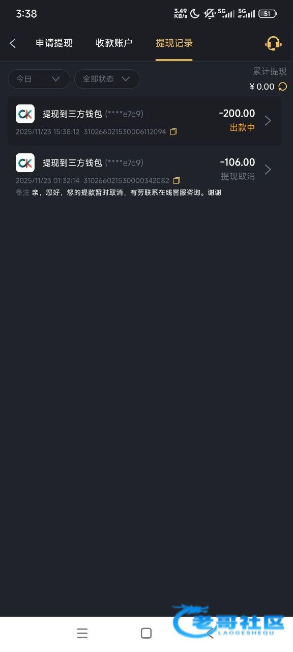 提现冻结