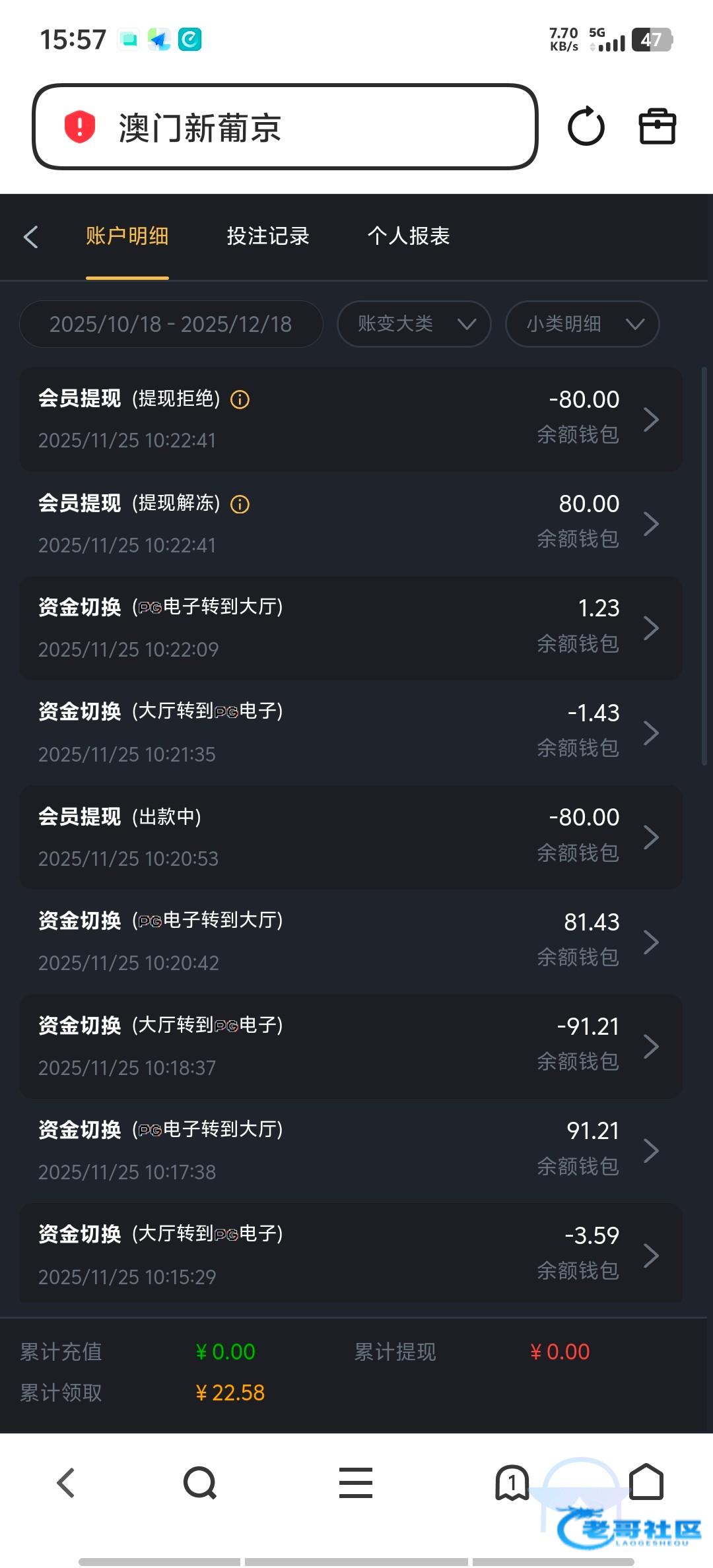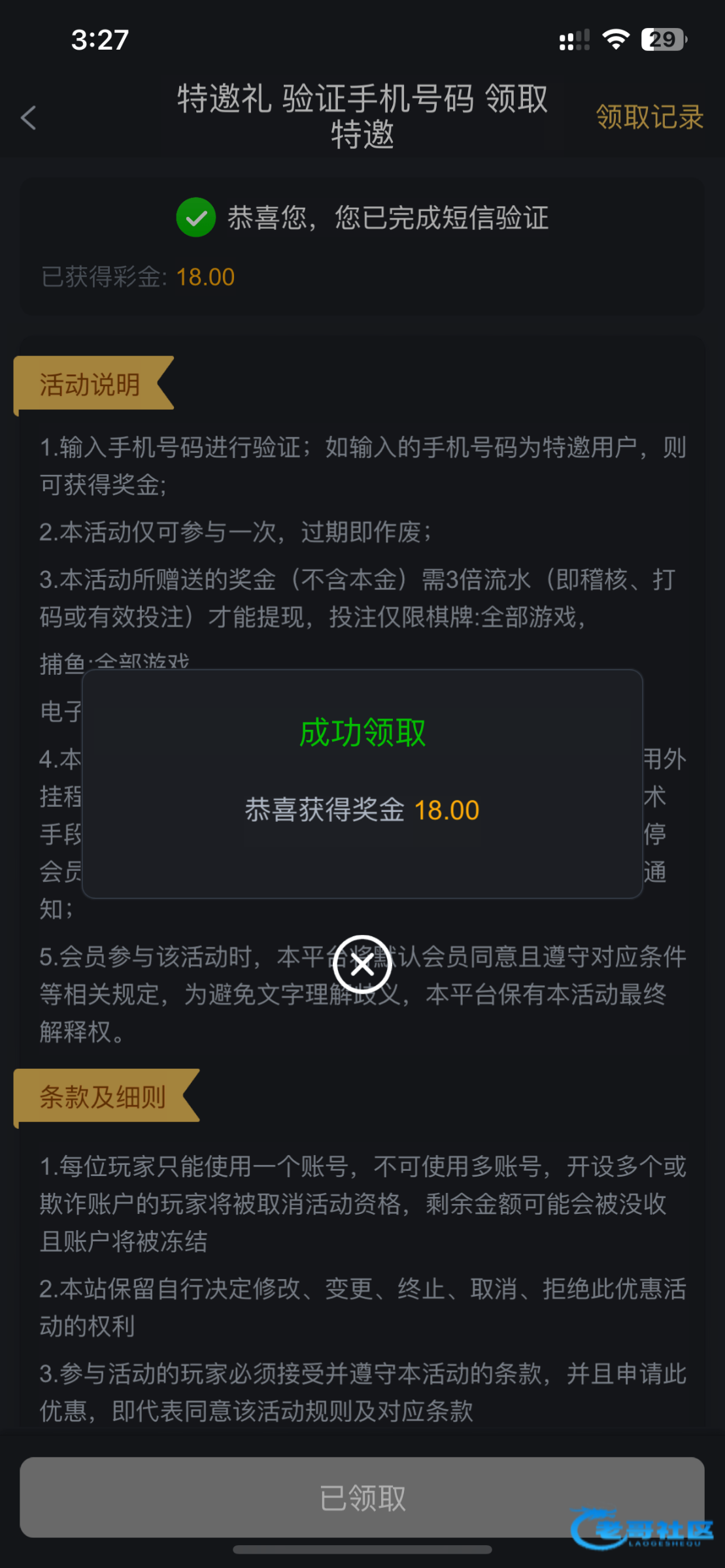 我也接到机器人电话上去领了18,打棋牌百家乐出了100,又充100送58特邀彩金出了300