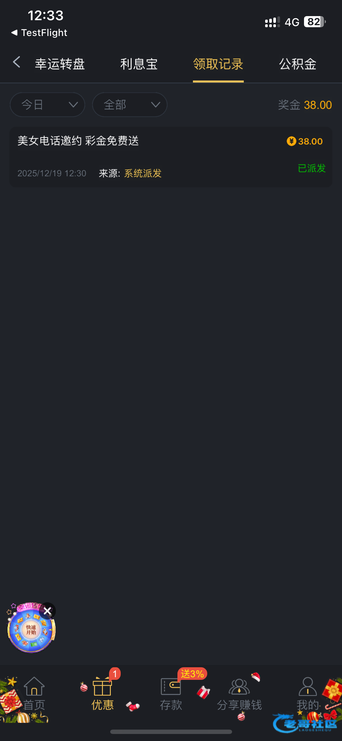 @做梦红了1000w ,不是那个,老兄,那个只能零点零几,这个彩金可能是需要接到电话,然后登录进去就有了,反正我是接到电话才有
