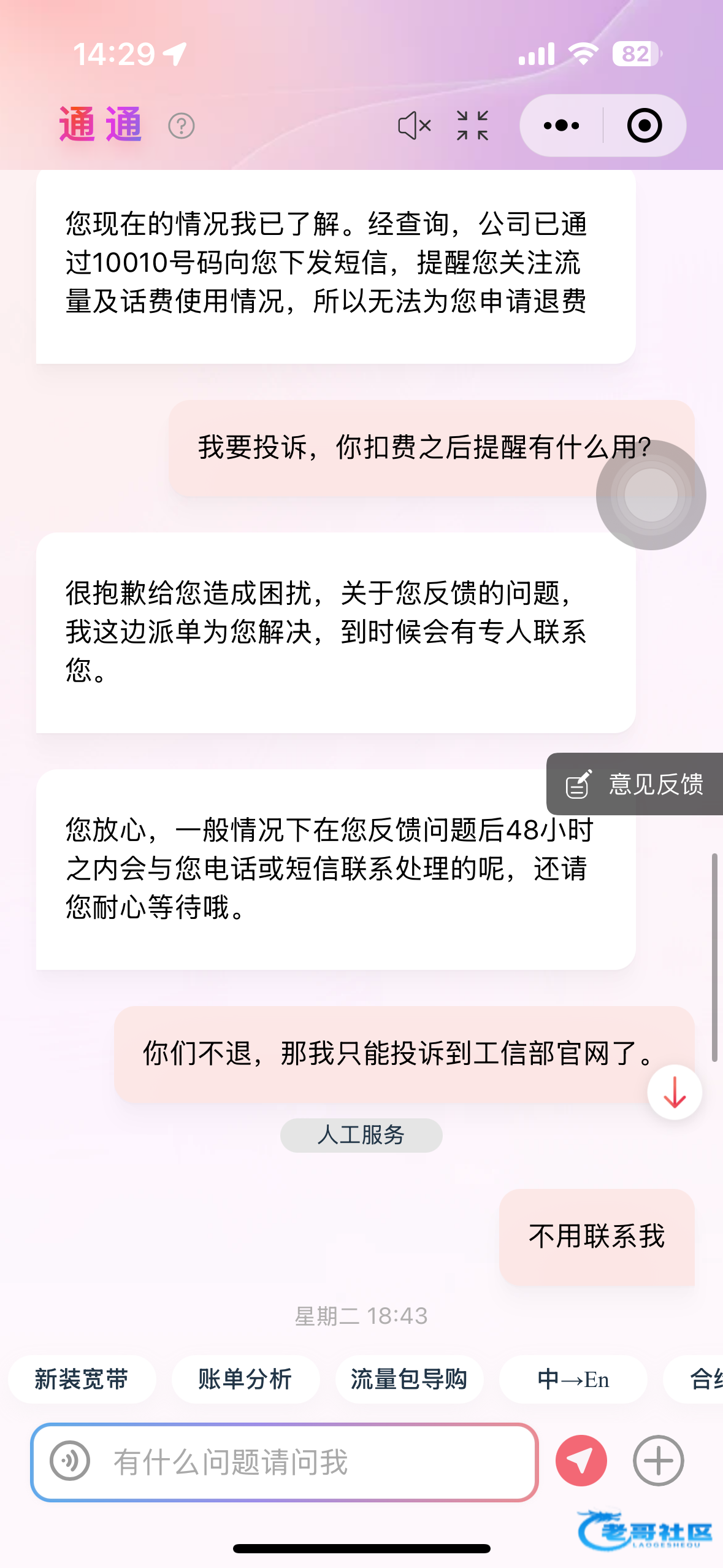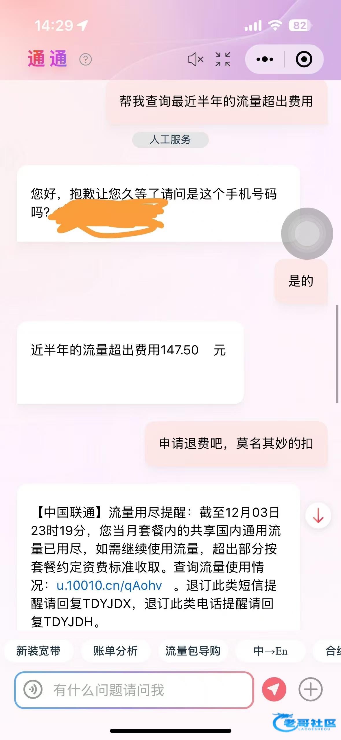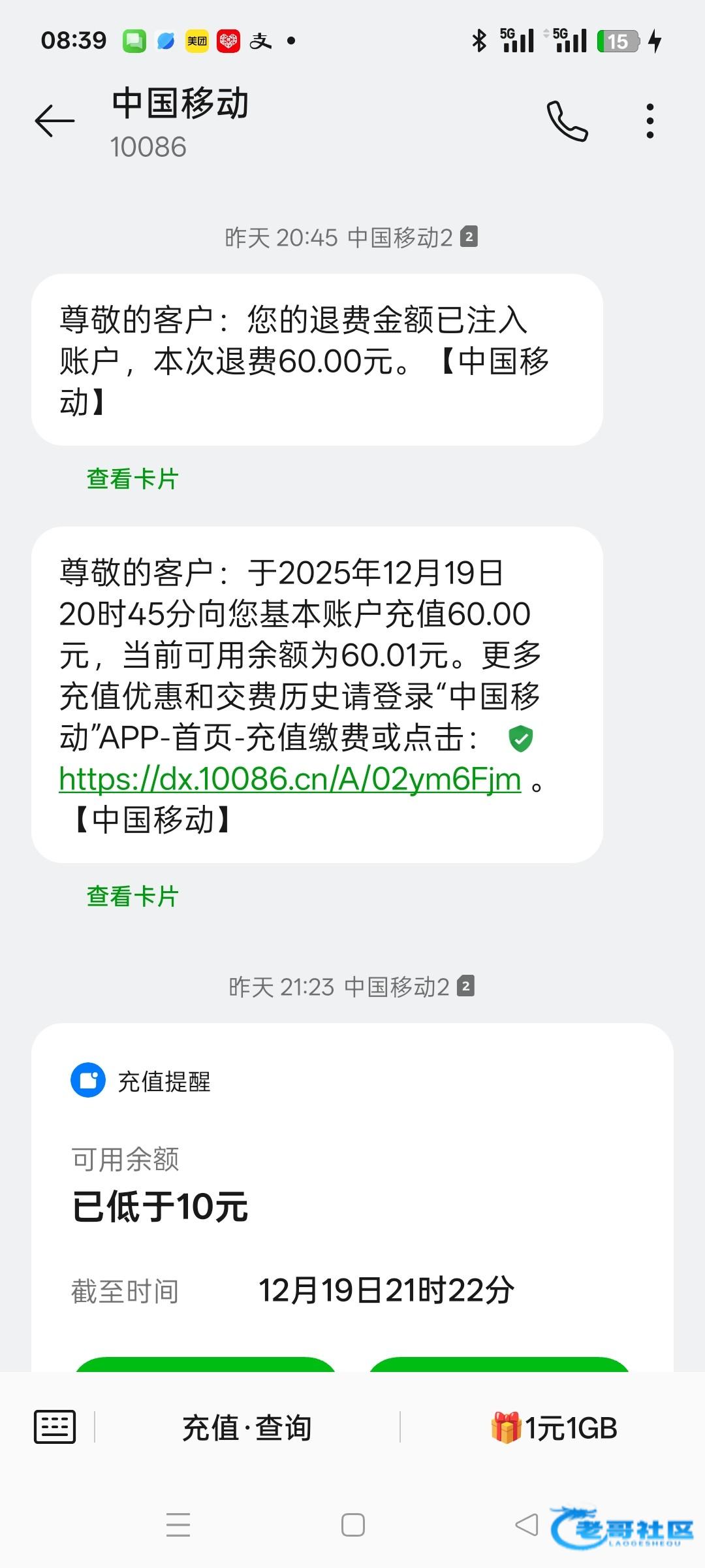 我就问问移动客服查超出流量扣费,没让他退却自己退了,挂壁没钱了用60话费兑换星巴克换了45.8
