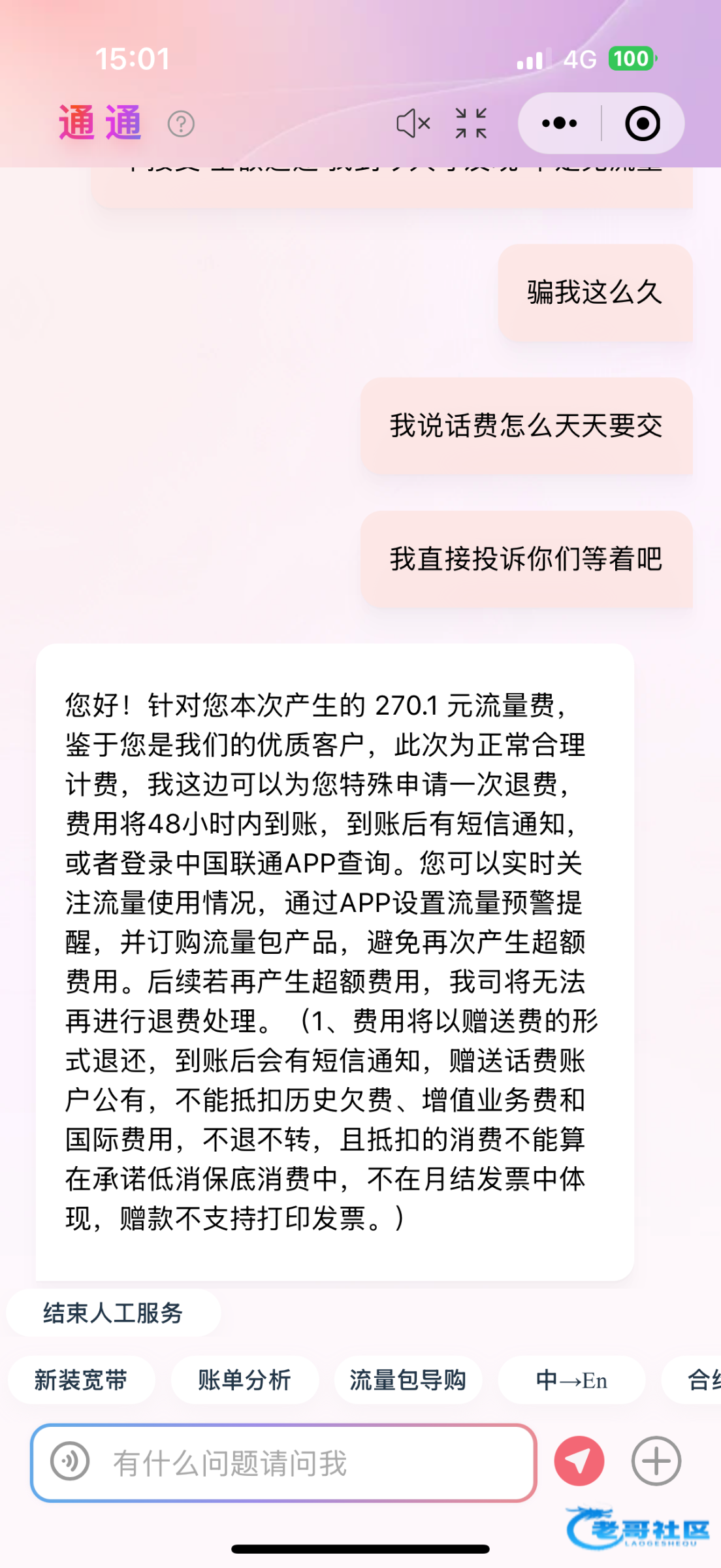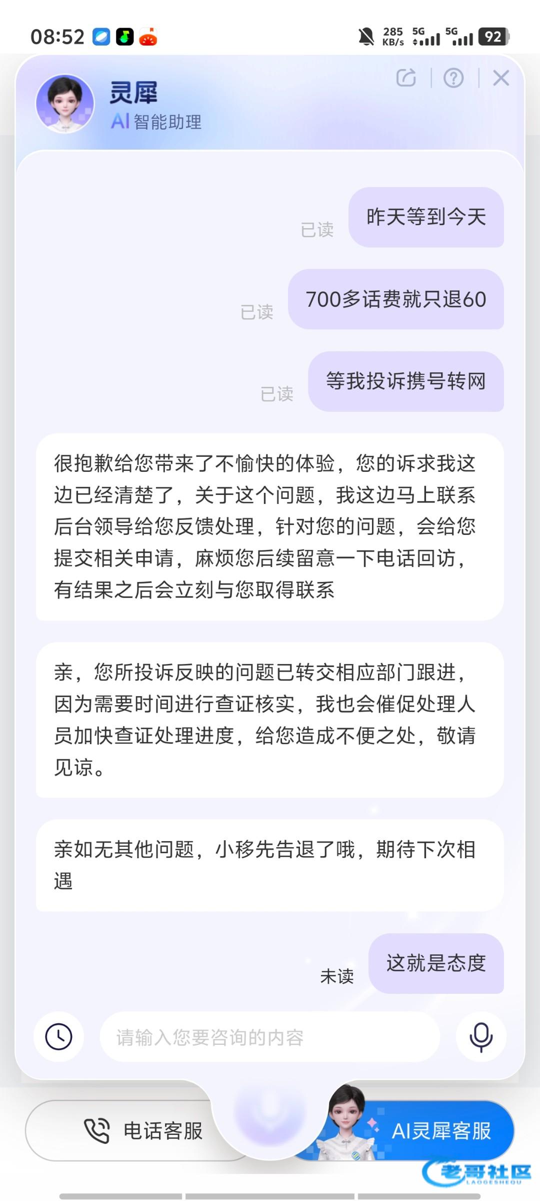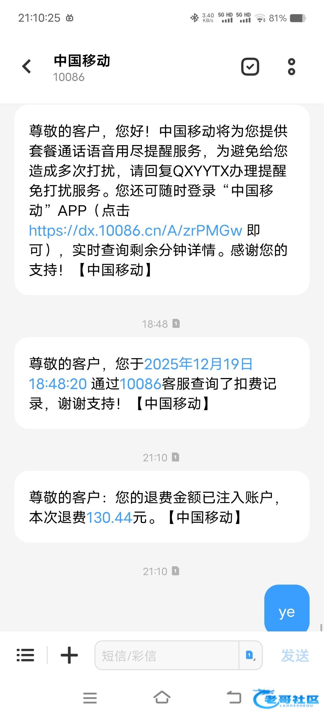 我就问问移动客服查超出流量扣费,没让他退却自己退了,挂壁没钱了用60话费兑换星巴克换了45.8
