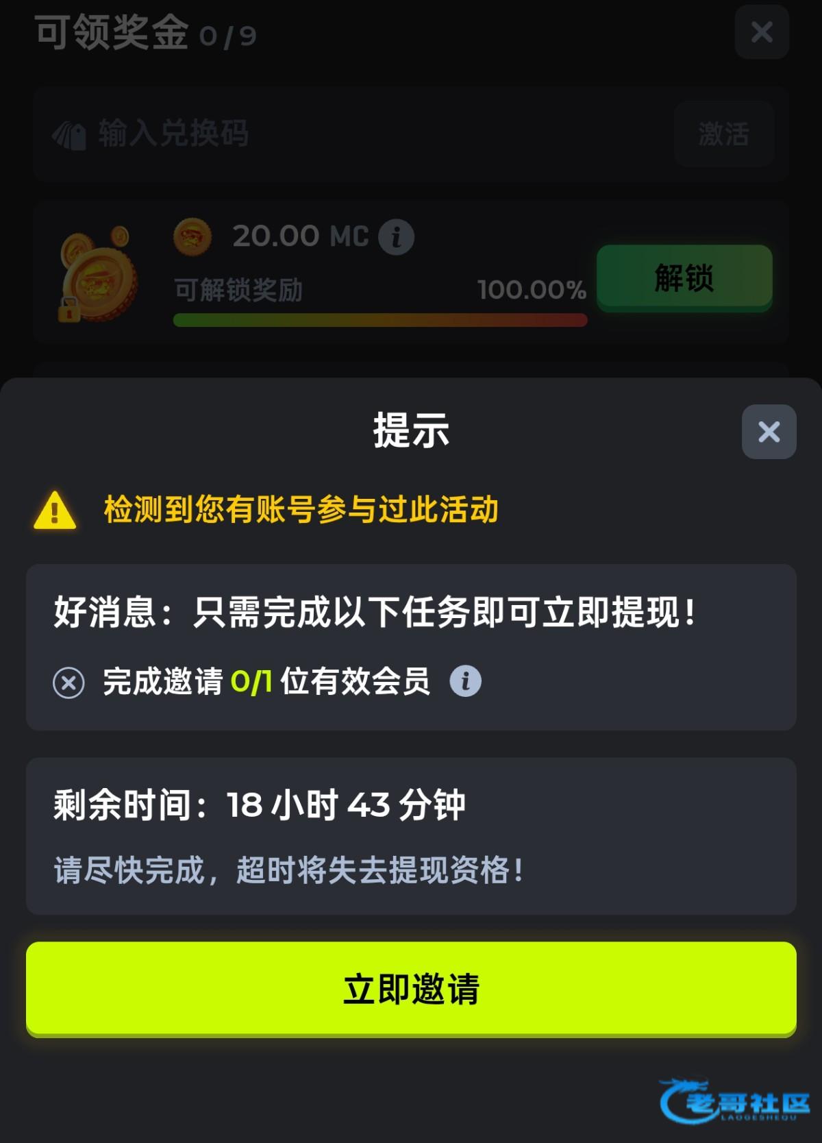 要邀人的就不知道怎么回事了,反正我是直接解锁的,提现秒到