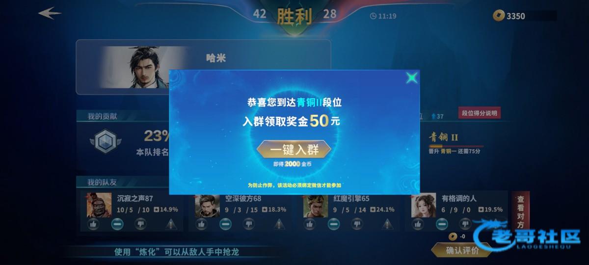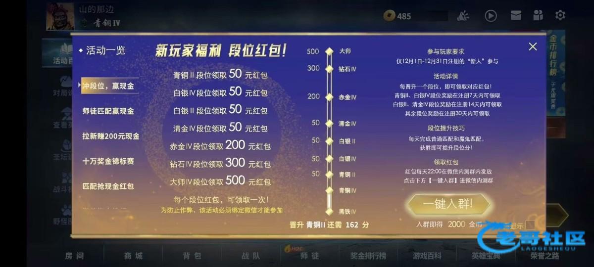 月底结束,我都青铜二领了50了。现在鱼上有40收的,直接搜收部落命运新人