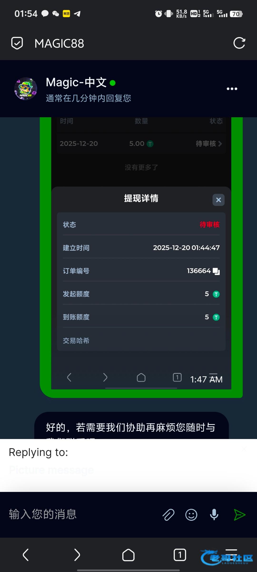 我是用的那个中文版飞机,就是之前说是会改u地址那个!全程不用梯子领了之后直接跳转浏览器登录,绑定163邮箱提现显示成功,让联系在线客服确认!找了客服2分钟到了5u小毛