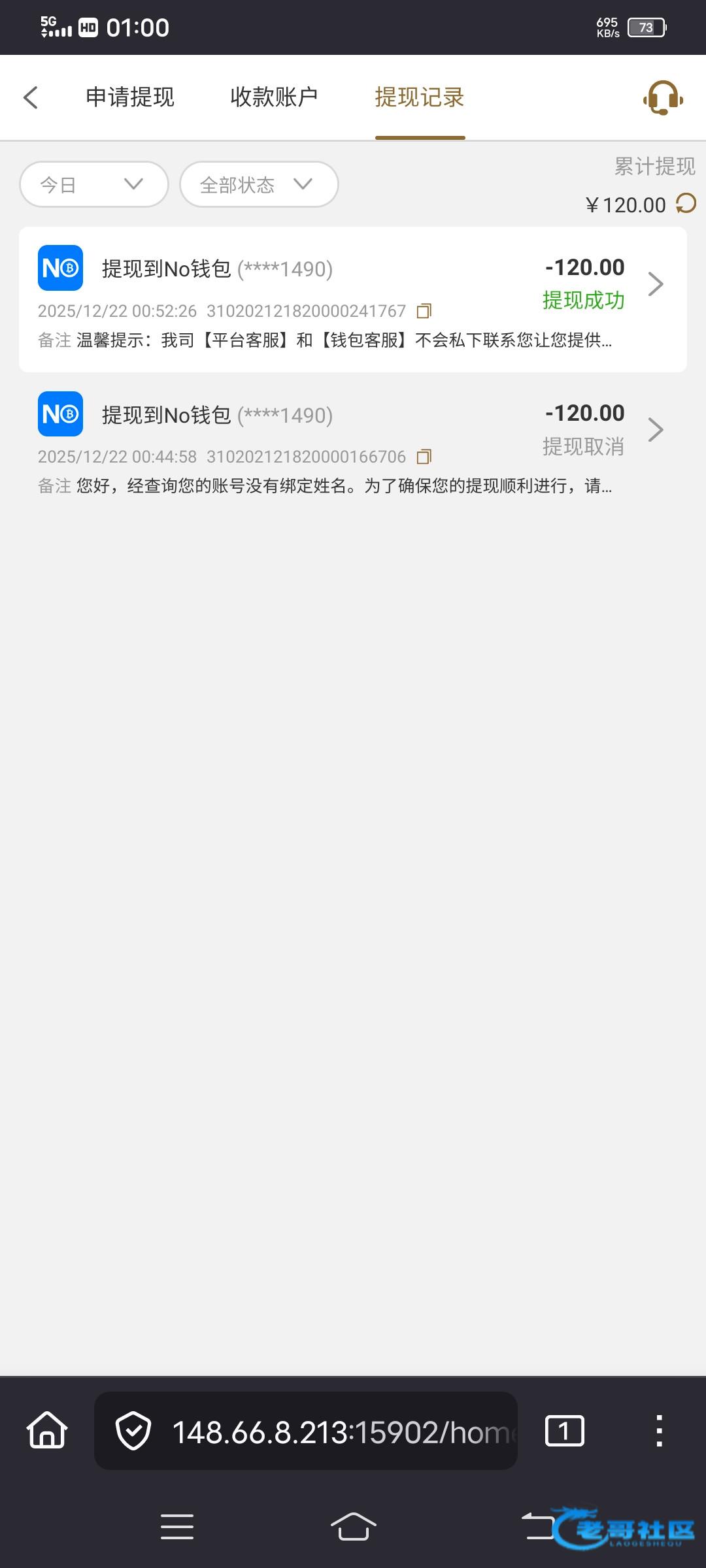 提120也给我到账了