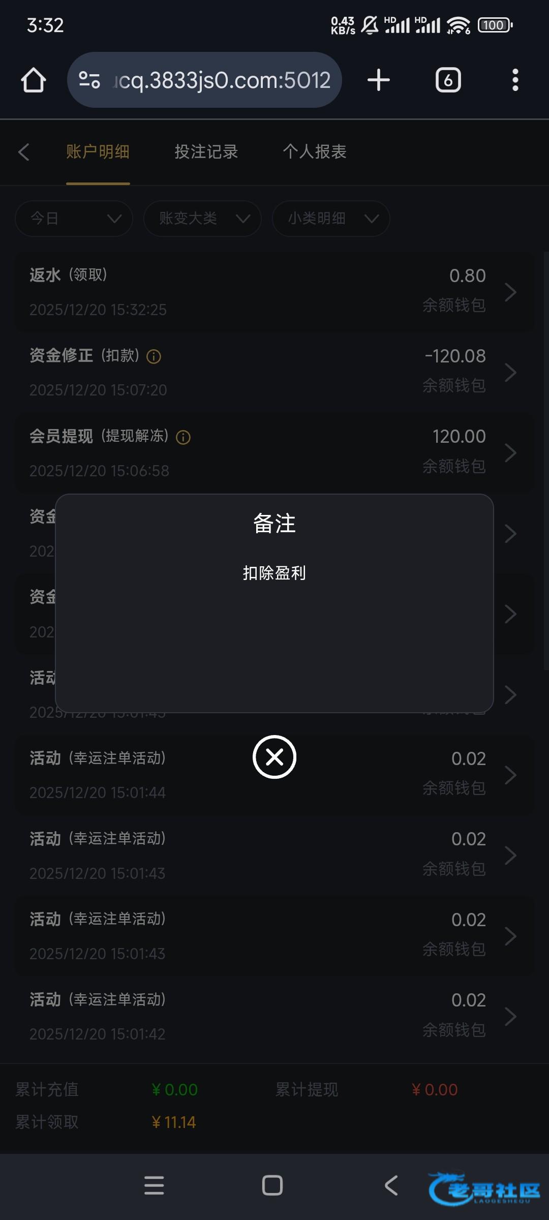 链接3833.tw 几个月没充,今天来电话说是送电话特邀回归彩金,上去看有个十块神秘彩金,那个自助六块提示同设备多ip,老哥们可以上去看看,没有也不要骂我