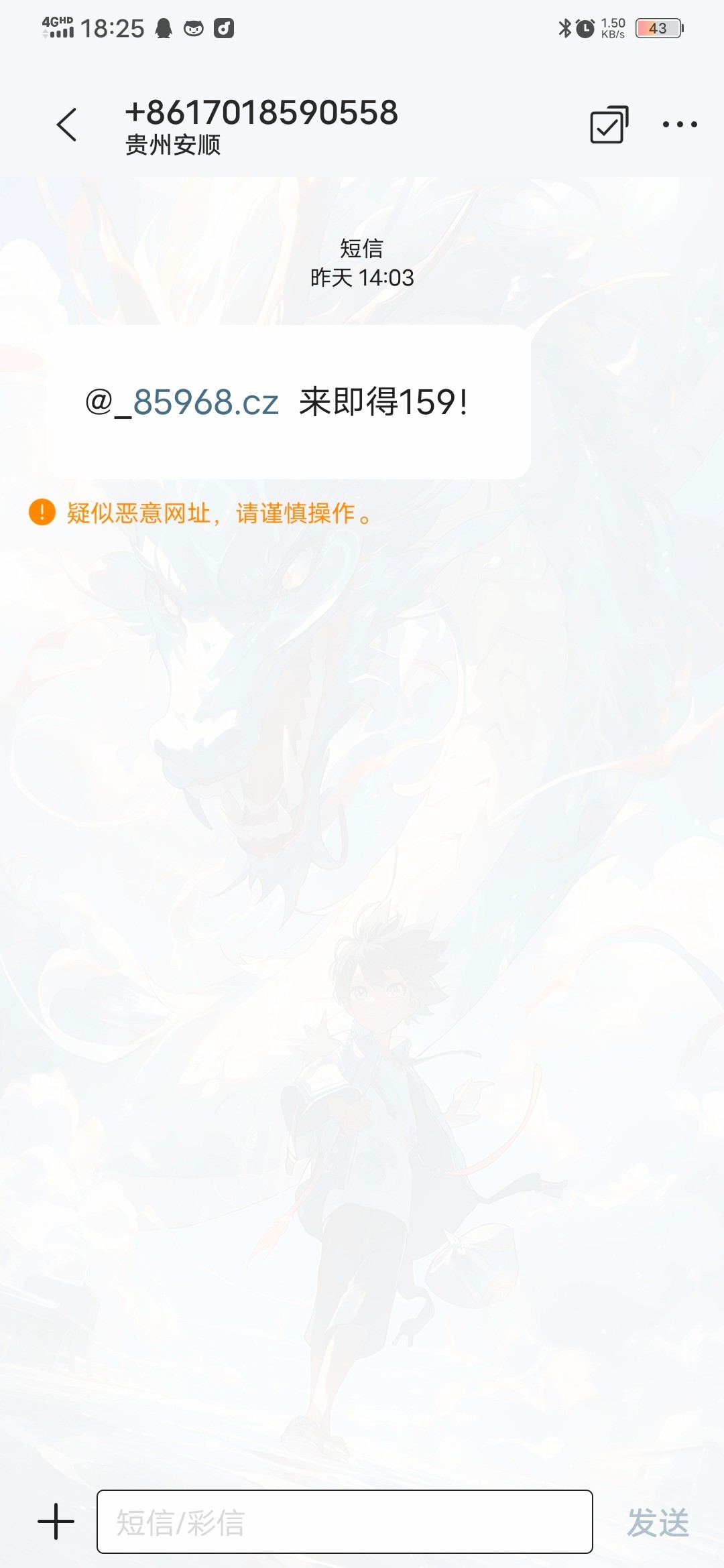 这个垃圾台老子也天天收到短信 ,是自己充玩的吗,我问没彩金送吧。还有那个91棋牌麻痹一天四五条短信,