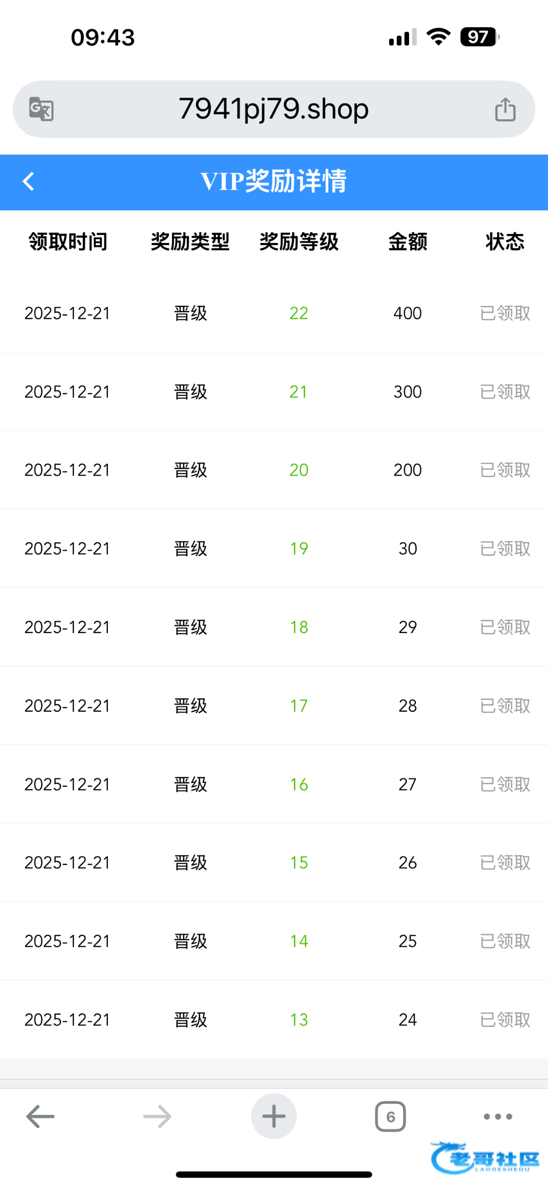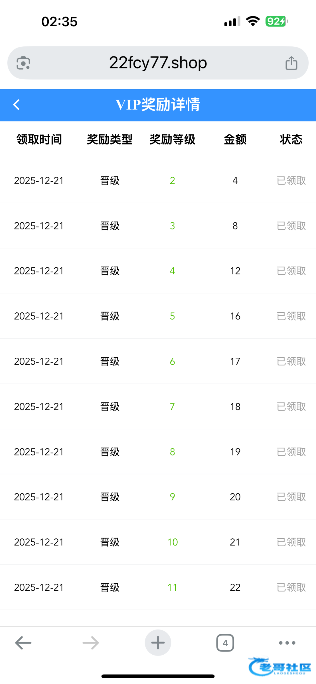 原本是V1的 升级了成V11 不知道是不是出现BUG 我又领了150的彩金有号上去看看VIP奖励详情里手动领22.gg