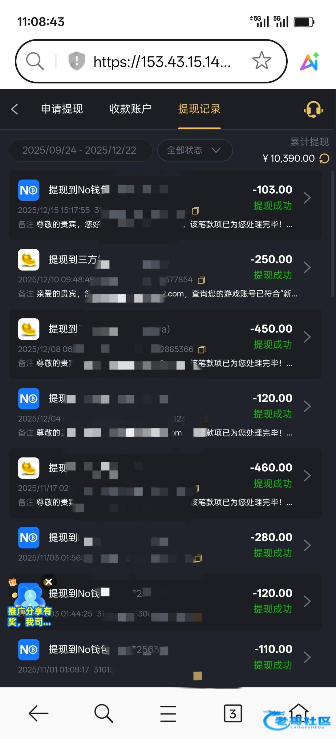 这个平台三个号,两个下级,同ip大额会卡款,也不封你号,小额千八百,没卡过,格局不怎么大,我看好多老哥说黑,我是玩了一年了差不多