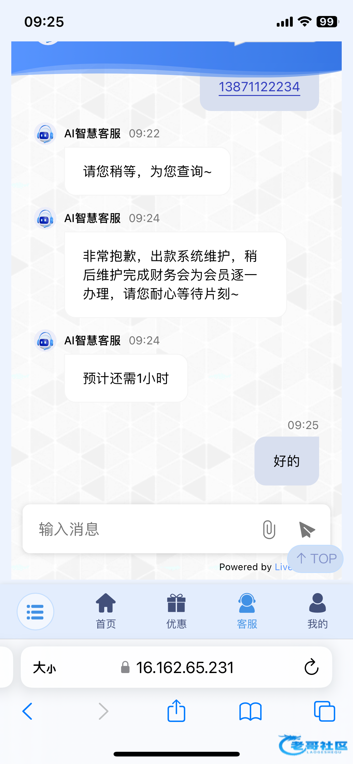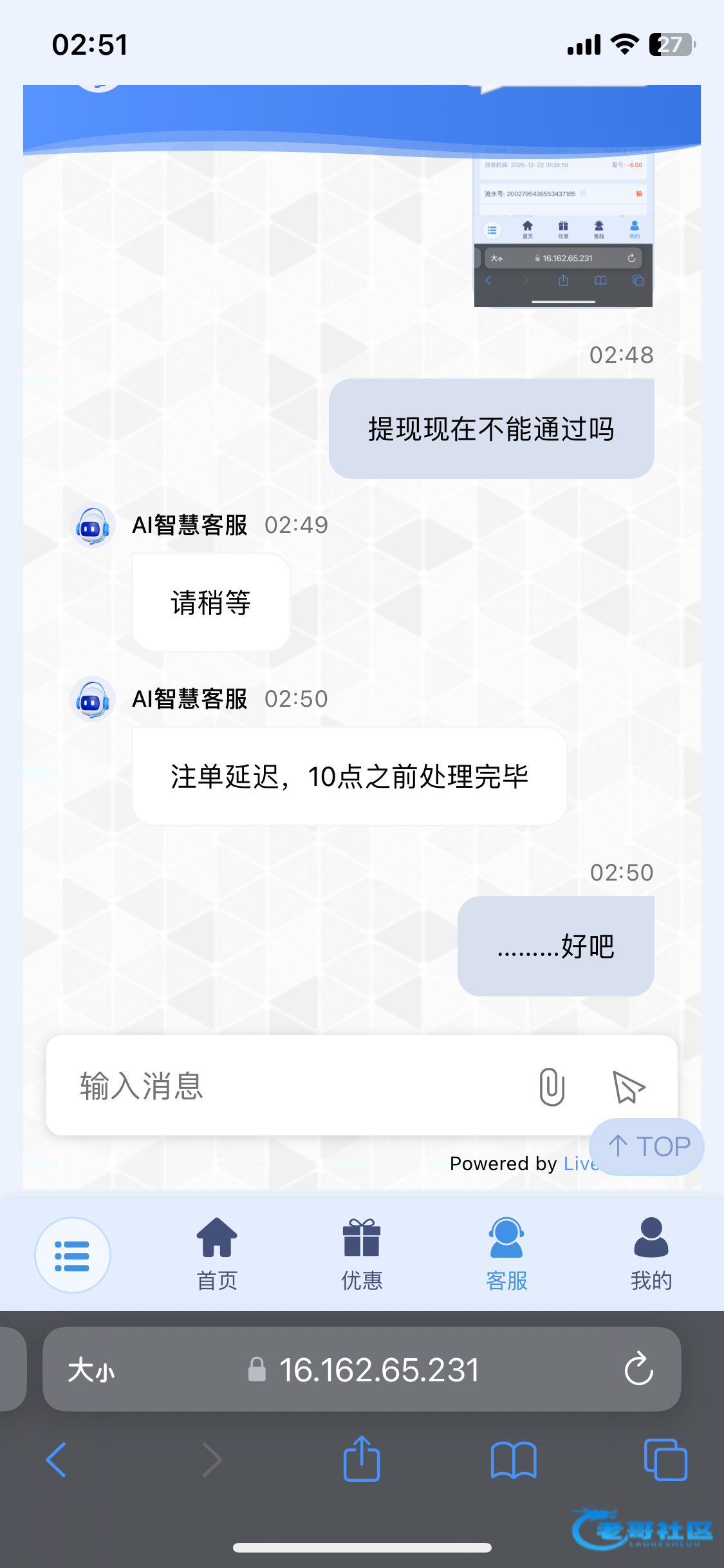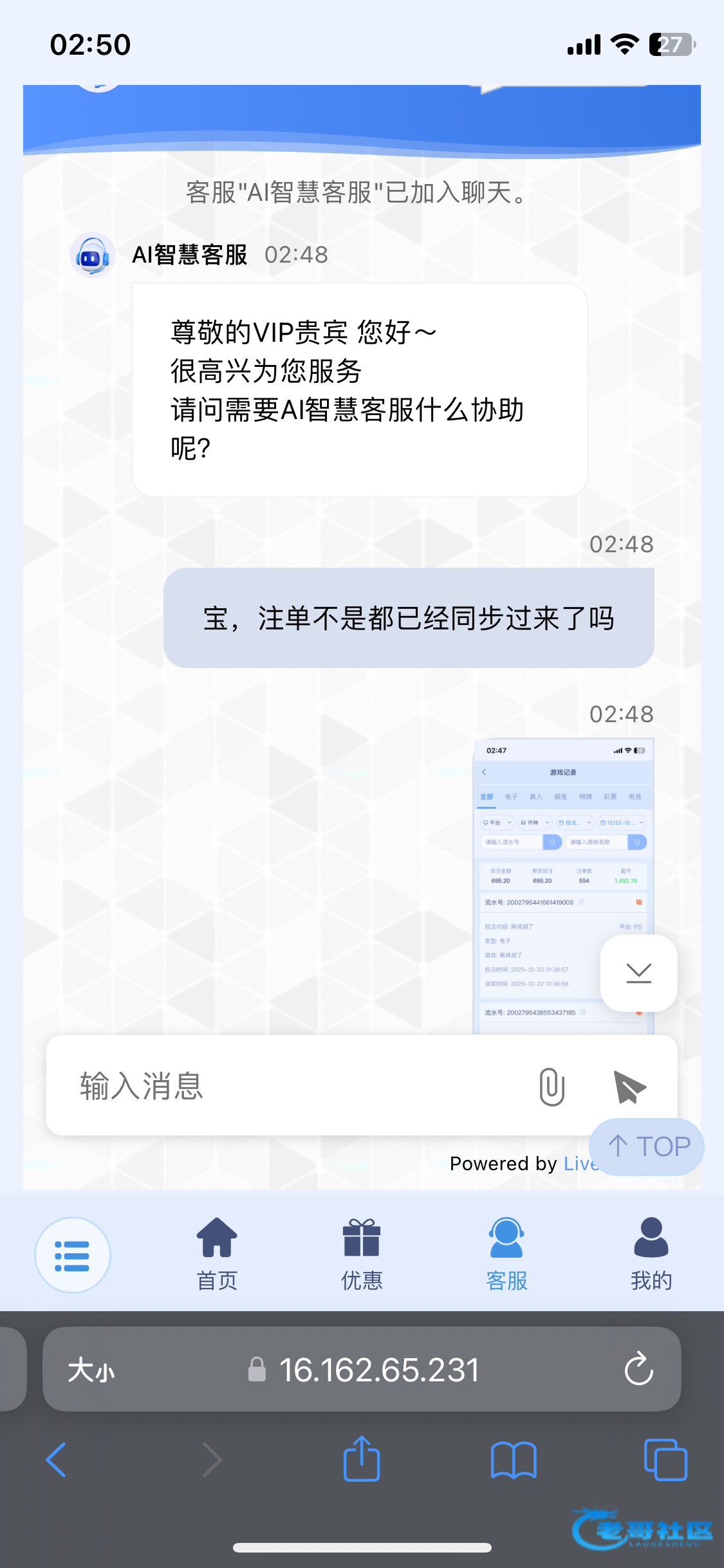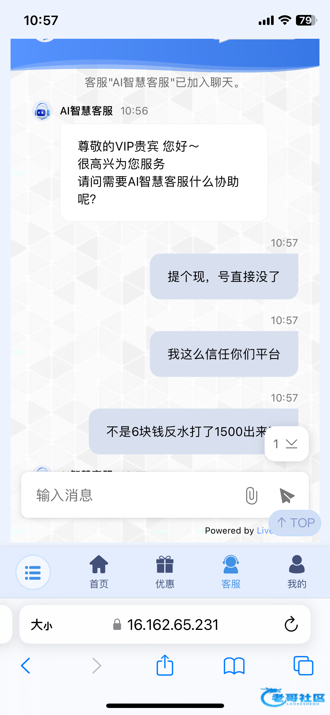 然后这个客服说随便说。说我们论坛的都是挂逼仔,羊毛党