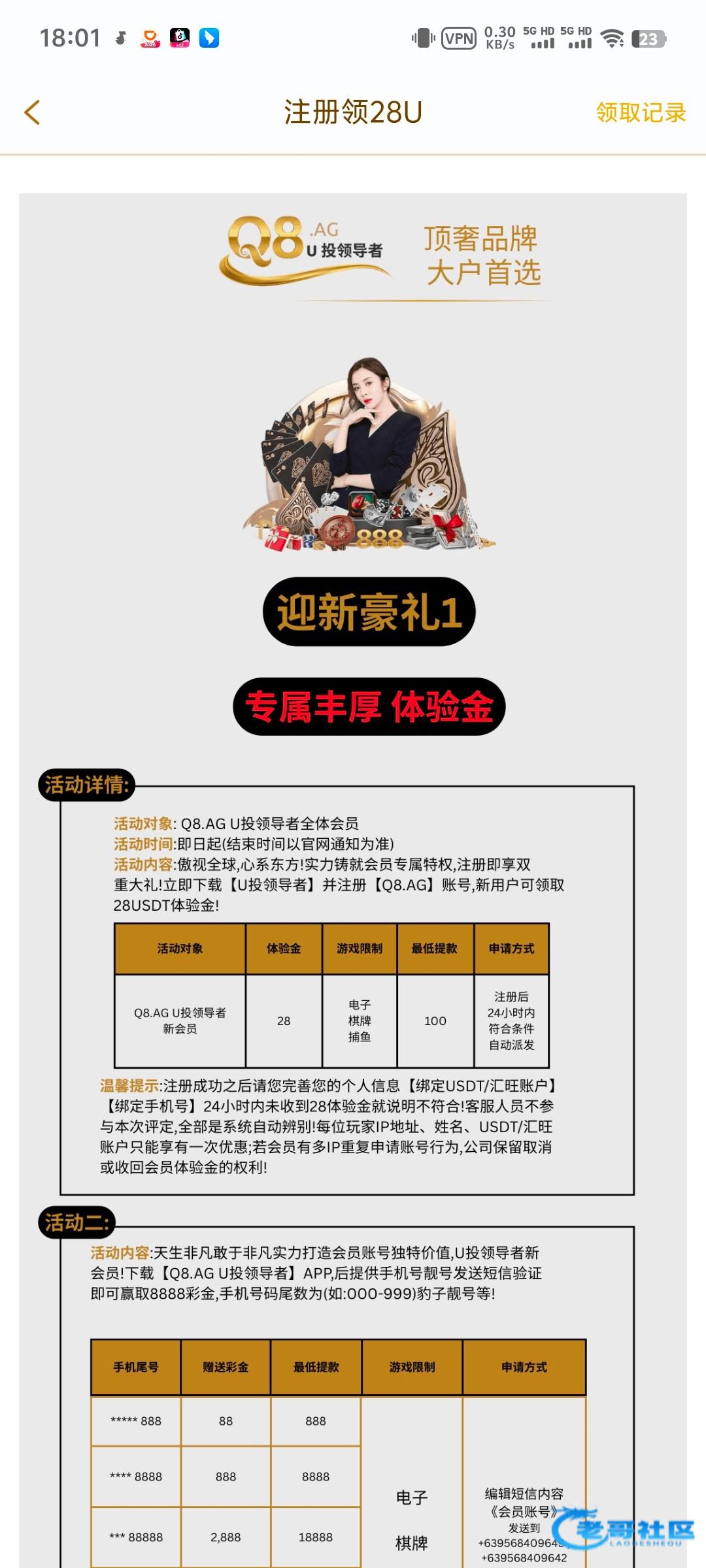 我是走的频道别人的推广链接,不知道官网注册是不是也送,因为是自动送的,老哥们可以去试试