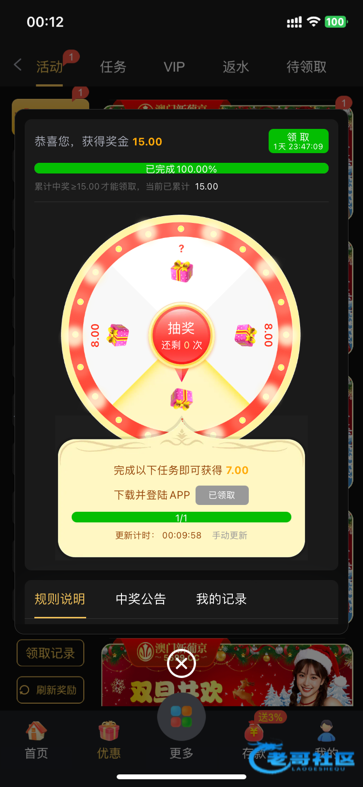 我去,牛逼,第一次见领过转盘彩金,这辈子我都不知道有没有机会领到