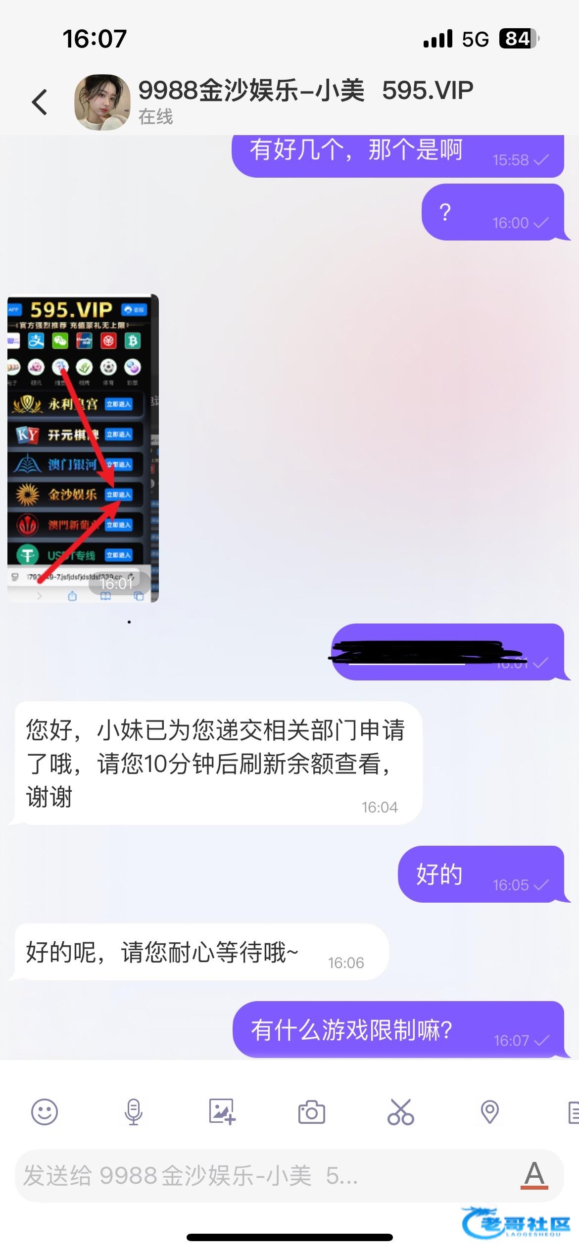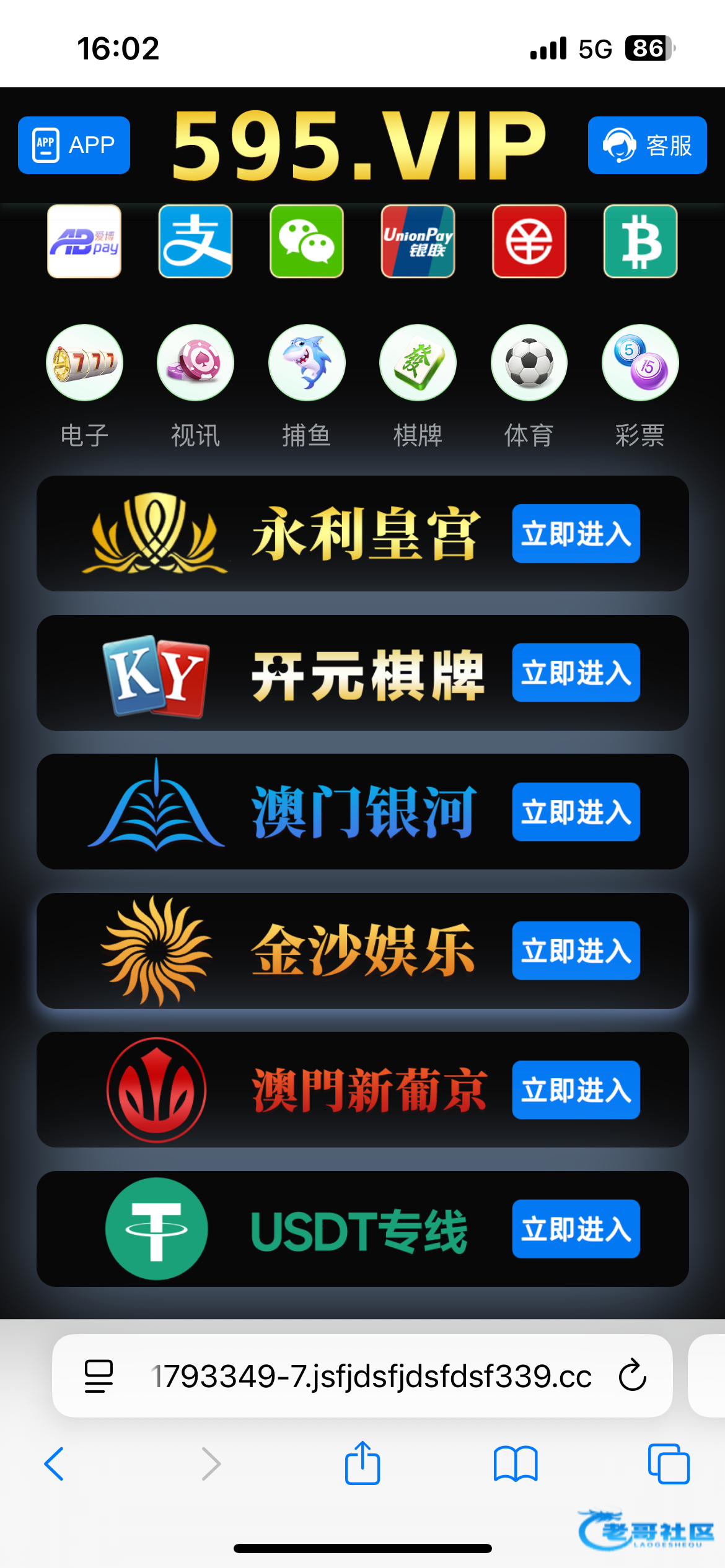 链接595.vip 我上午注册了金沙娱乐,其它都没注册然后刚刚就来电话让下载线聊加客服领彩金,不知道是不是注册其它的也行。线聊333aaa.cc,专员9988cc,没注册过的老哥可以先注册一个等电话。