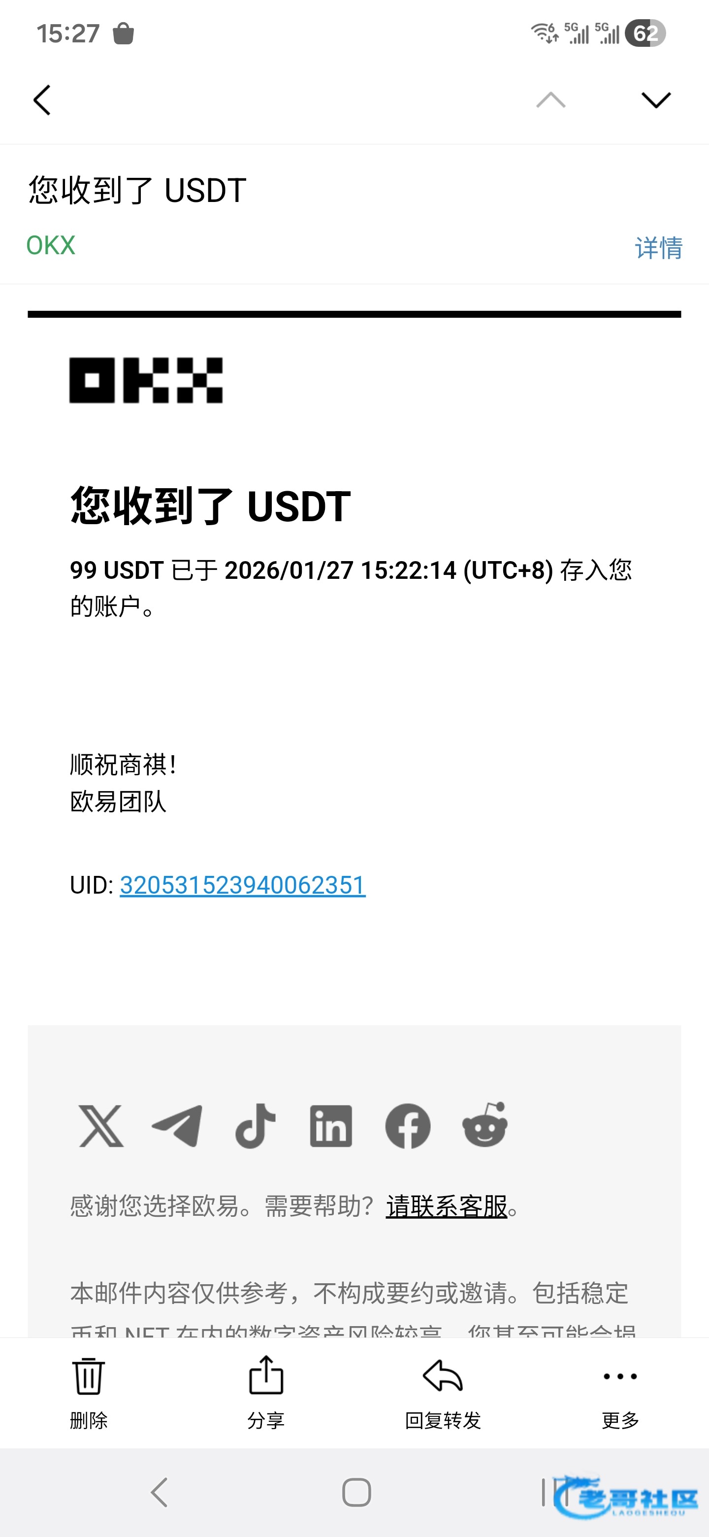 收到老哥回馈