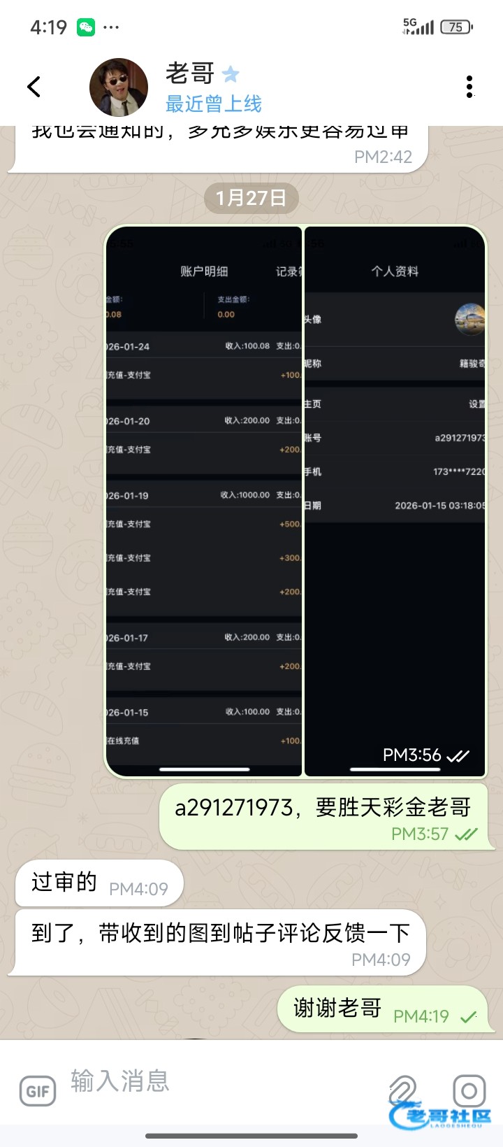 老哥靠谱1600充值返现到账