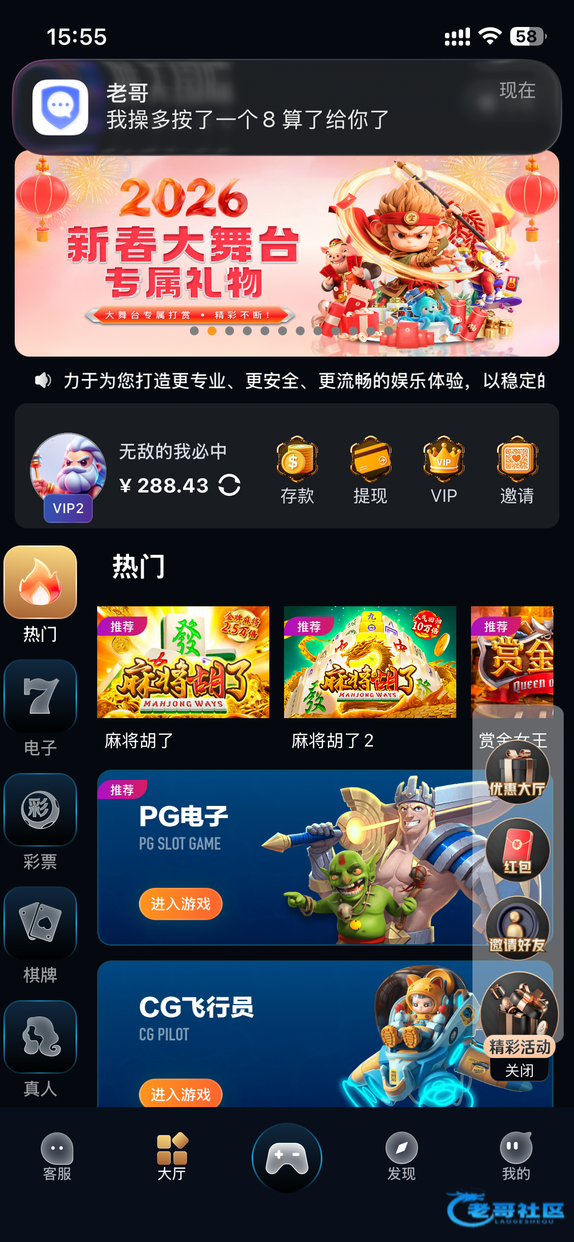 真拉圾充了800打了2000流水一直拉2.8块没进过一次免费