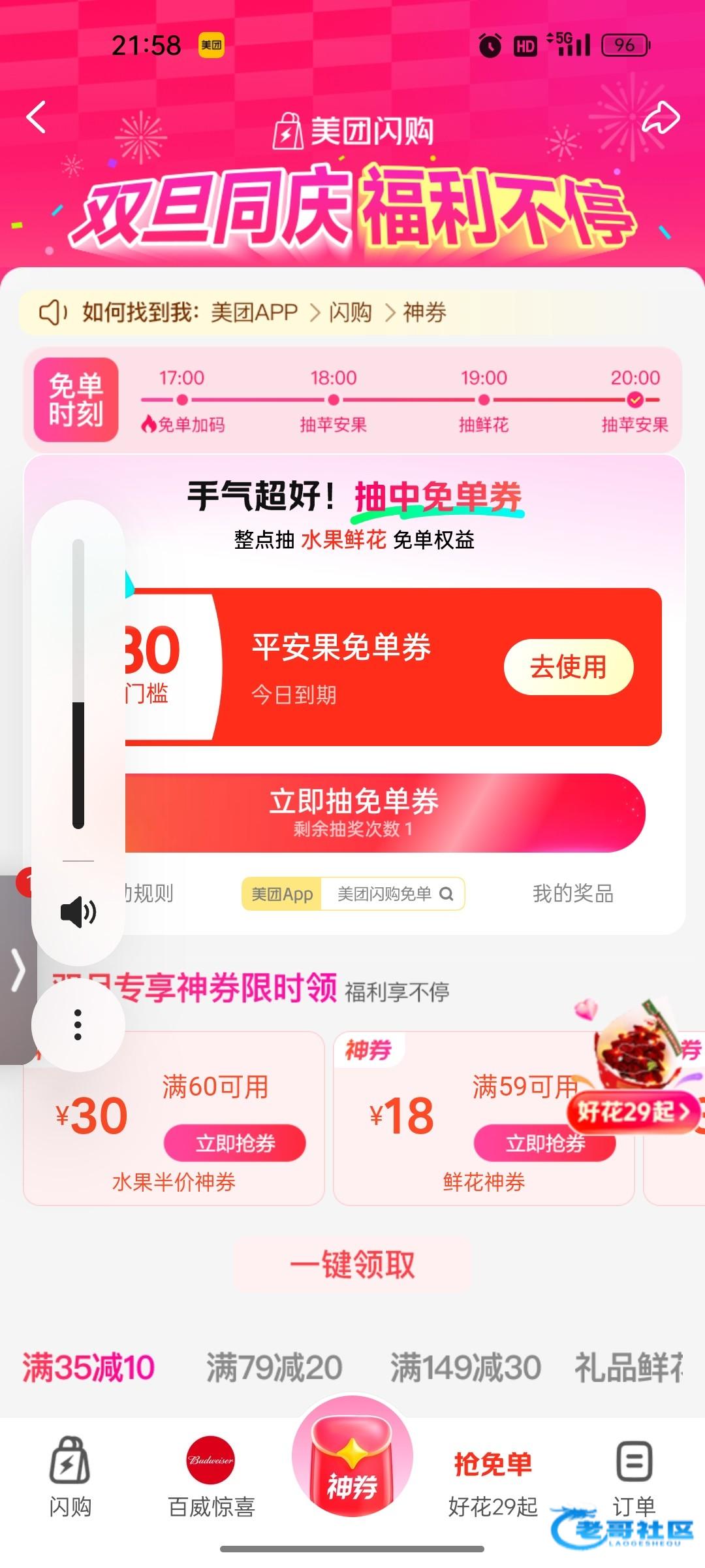 美团app里找到闪购去抽,抽不到可以多试几个号我一发就抽中了,可以白嫖三个苹果,祝各位老哥圣诞快乐