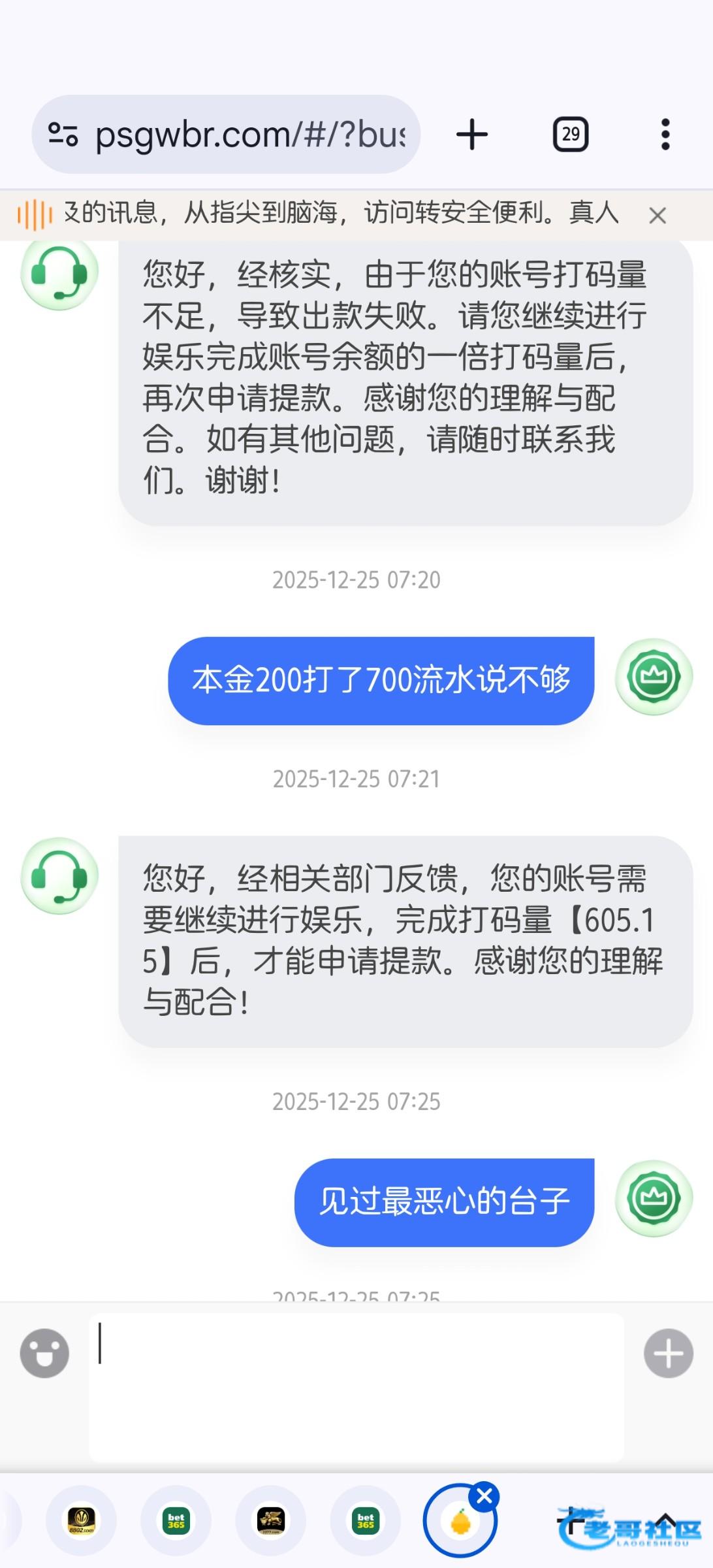 本金200打了700多流水,余额605∶提款却罚了605的一倍水说我打码量不足!