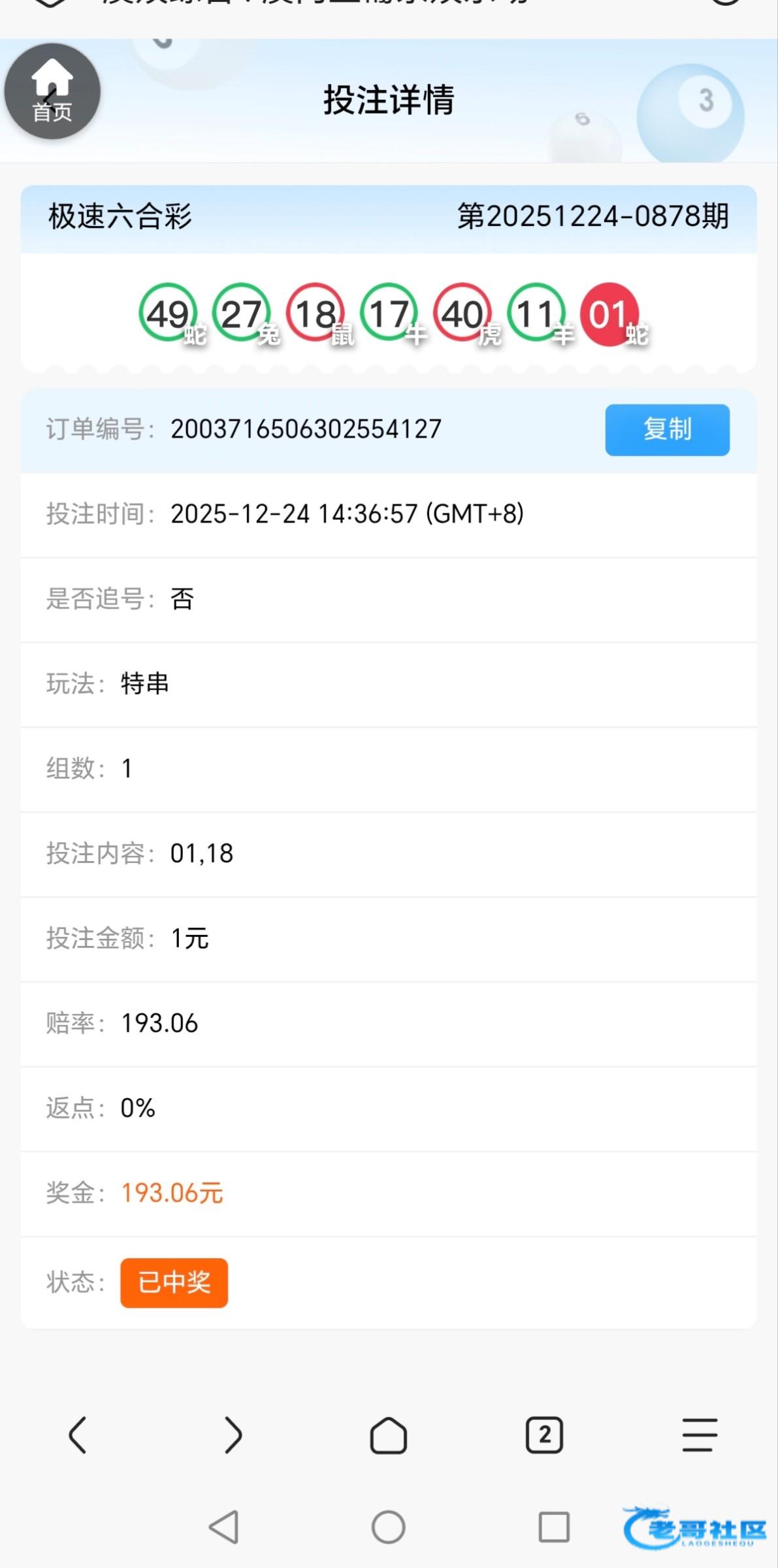 中了一块特碰192元,之前充值过,己经封号!买六合彩也封号!