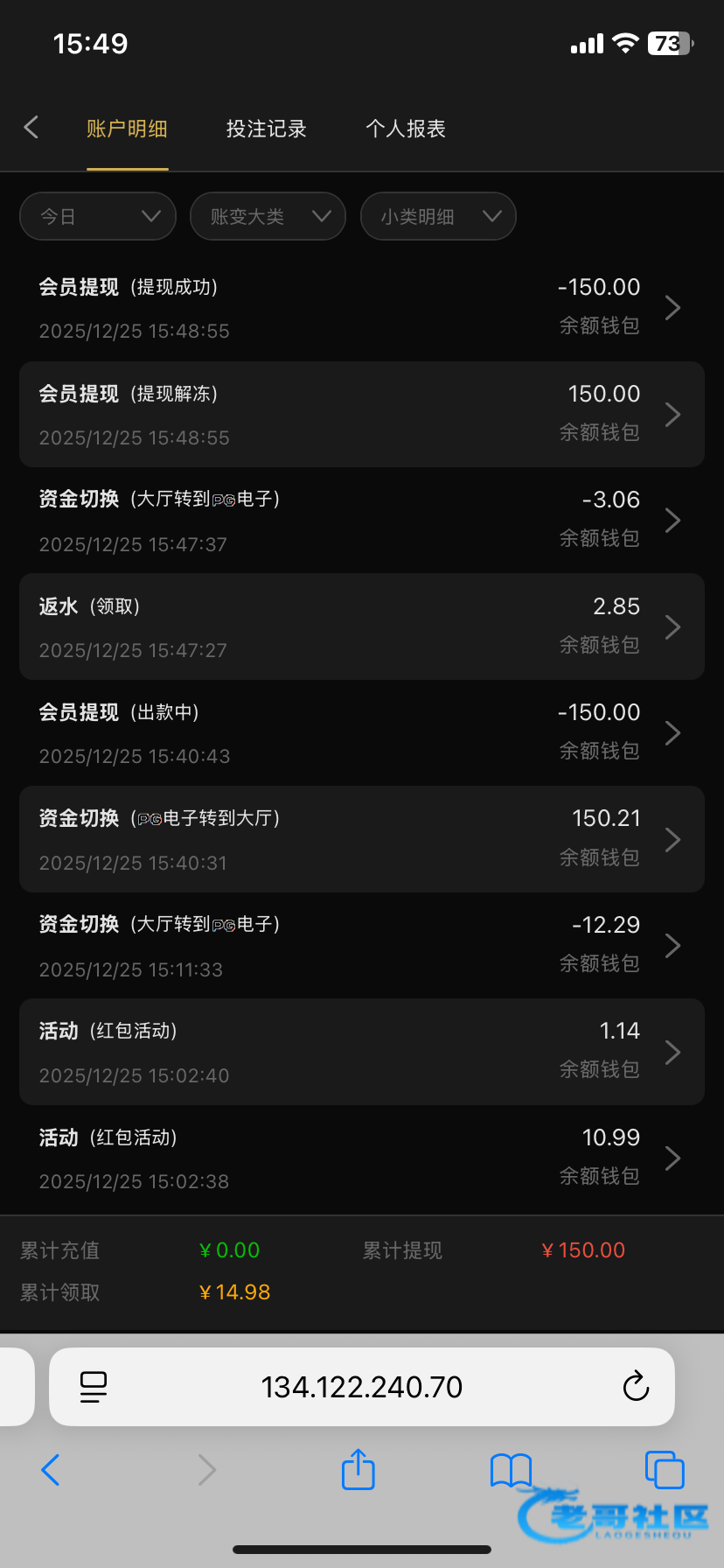 冲过一百,领了十几块下了150