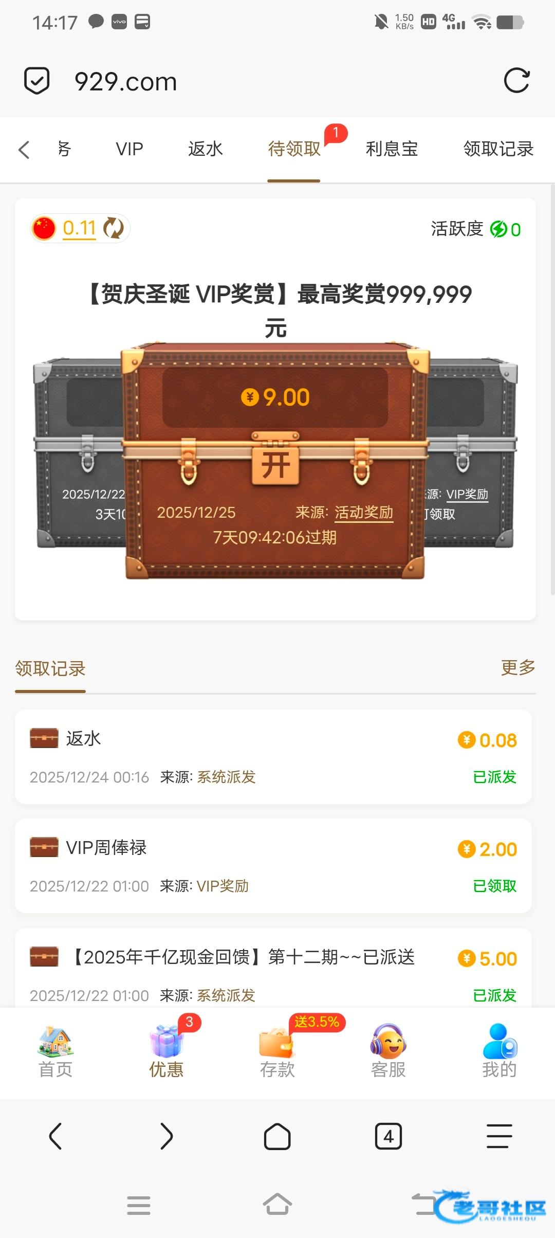 2点多就领了,懒得发,今天好多彩金,偷撸就行了,发出来就挨骂,我是不发帖子了