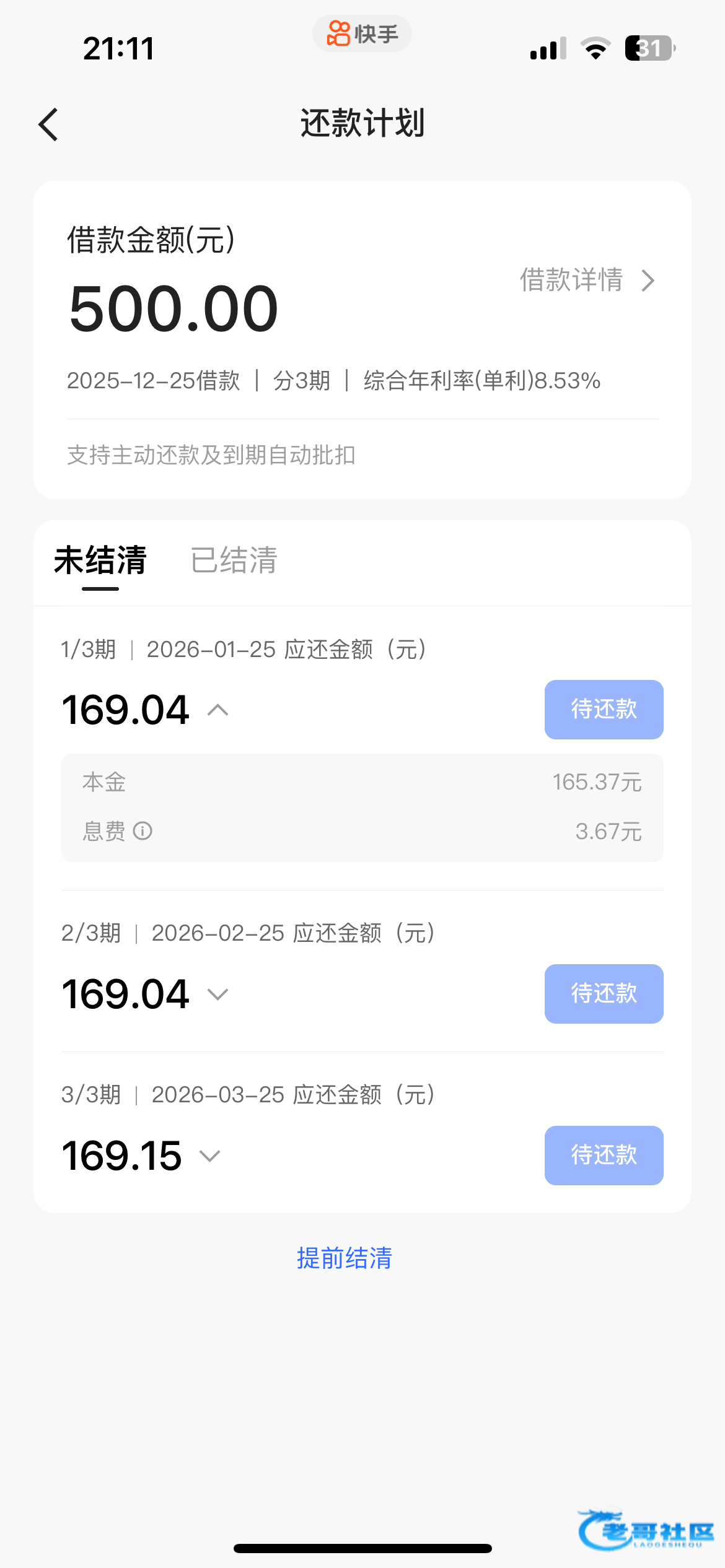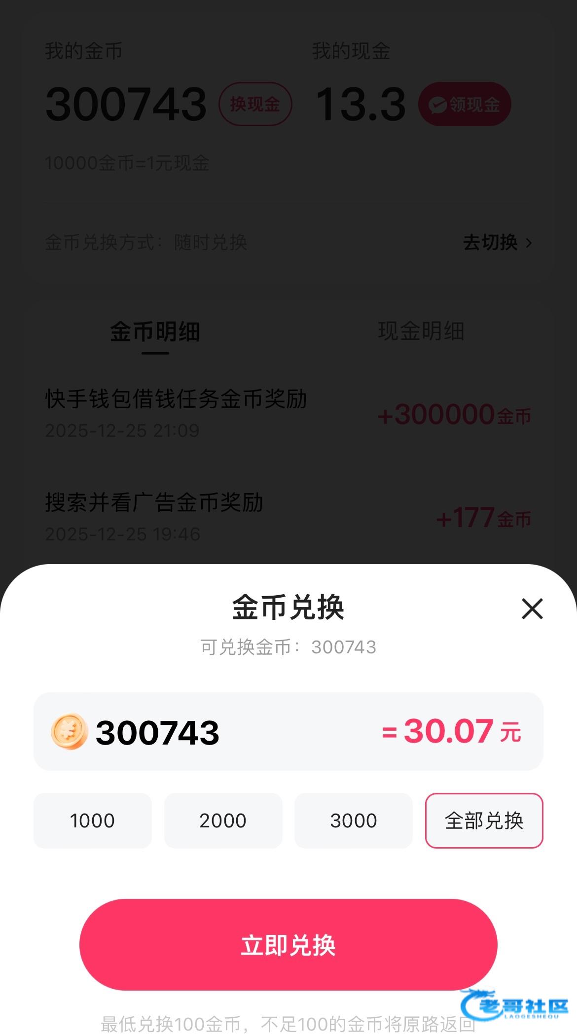 快手金币10000金币=1块。开通度小满查看额度免费领100000金币。借款成功一次得300000金币。这里技巧是只借500,就分期三个月,而且是随借随还类型。这样借了就还。利息比40元少