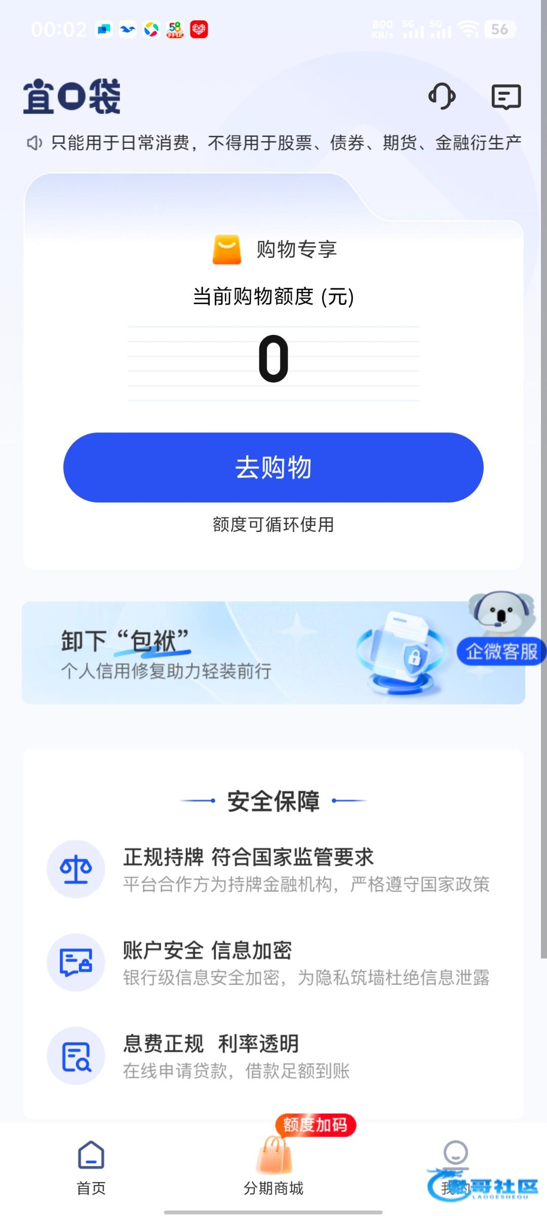 额度为0的自己在我的,我的额度里自己重新审核,我从来没有额度今天秒出,商城下单立减金(有一个满41-40的券记得领),支付宝的利息最低,到货了自己想办法套现