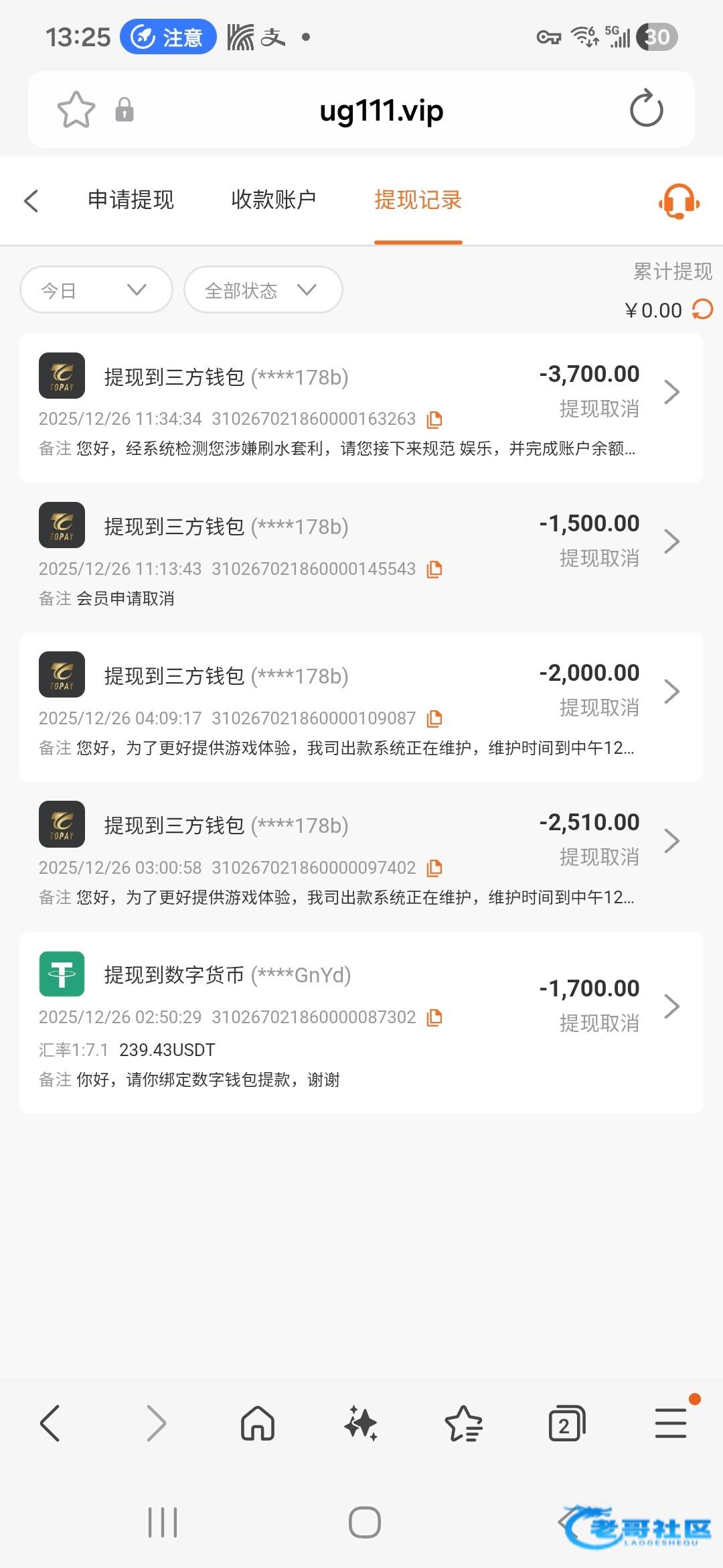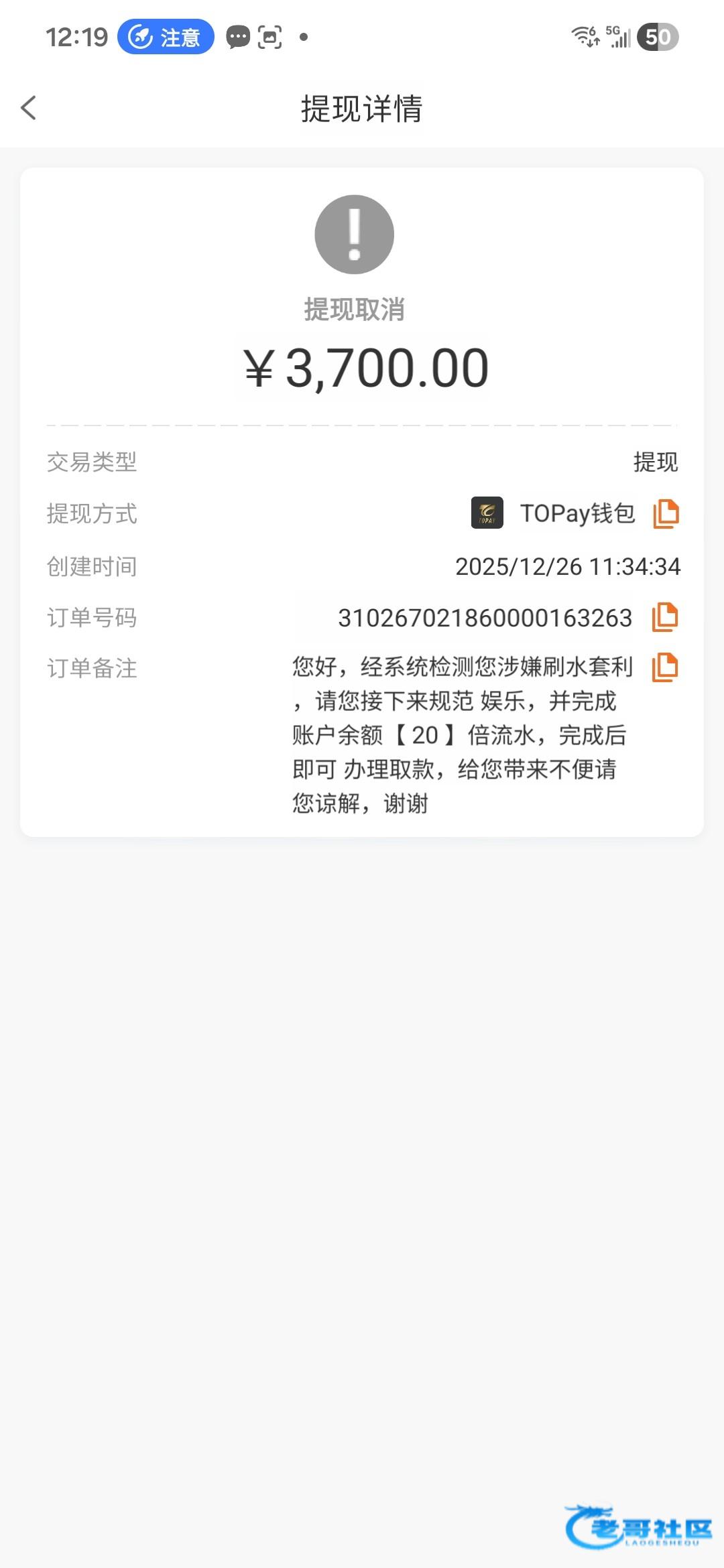 凌晨充值16u 提U不让提,让提电子钱包,又退回说维护到中午12点,到了时间提了后又退回罚20倍水74000 打pg和wg违规涮水套利,小额出 大额黑 避雷