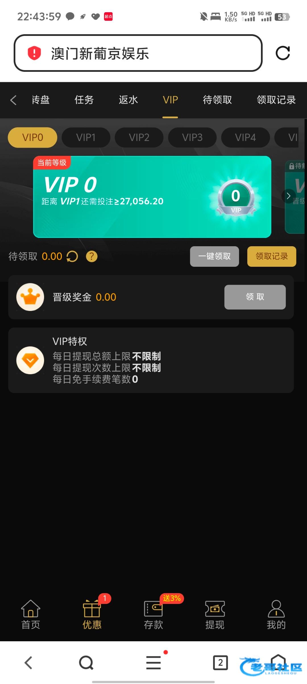 新葡京尊享礼遇彩金,有号可以上去看看,这个之前充值过100,536.vip