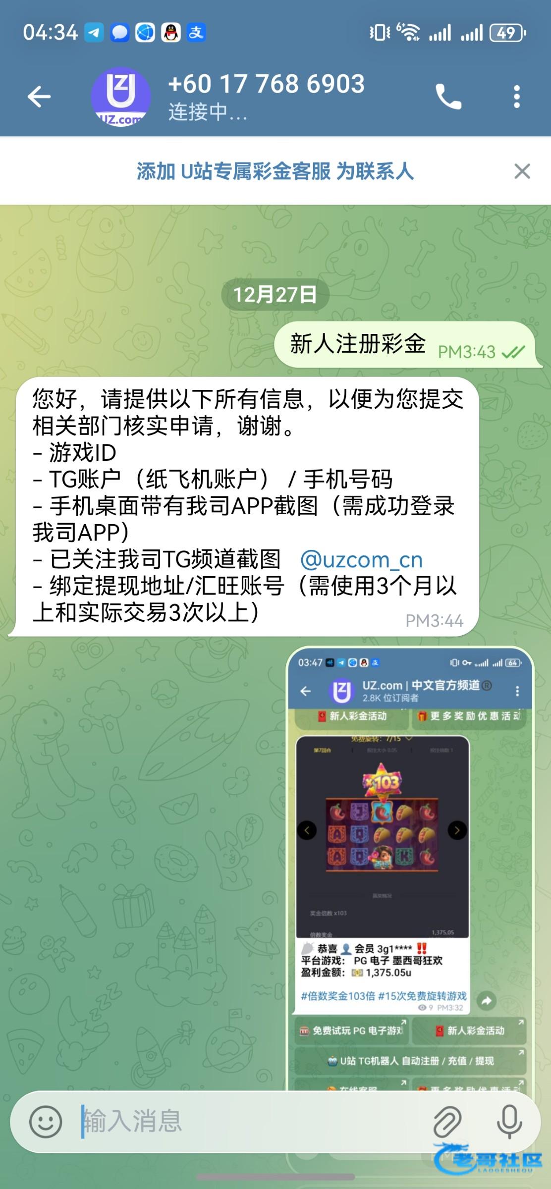 飞机上看到的,新人注册送9.99u,按客服要求绑定出款地址,关注频道就送,提款最低50u,需最低充值5u,我没打出来,老哥们可以去试试,网址uz.com