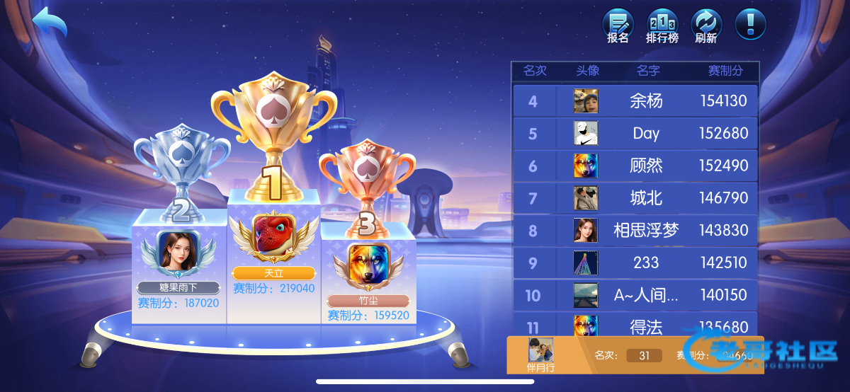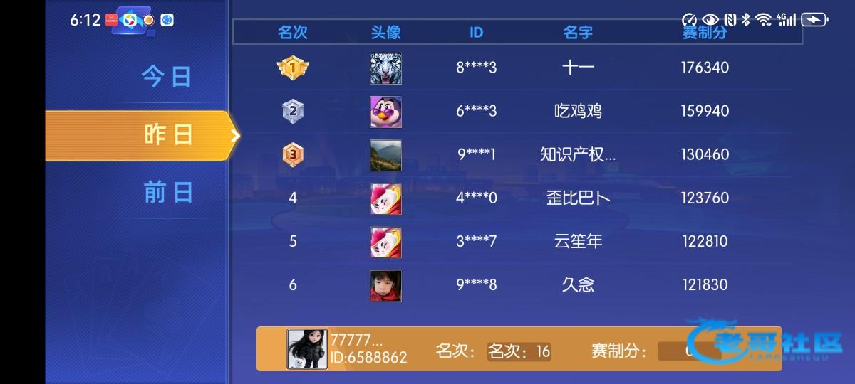 今天16名,老哥到时候记得反哦,之前新娱乐也是你下级,天天打,打了半年,上榜不少次,没问你拿过