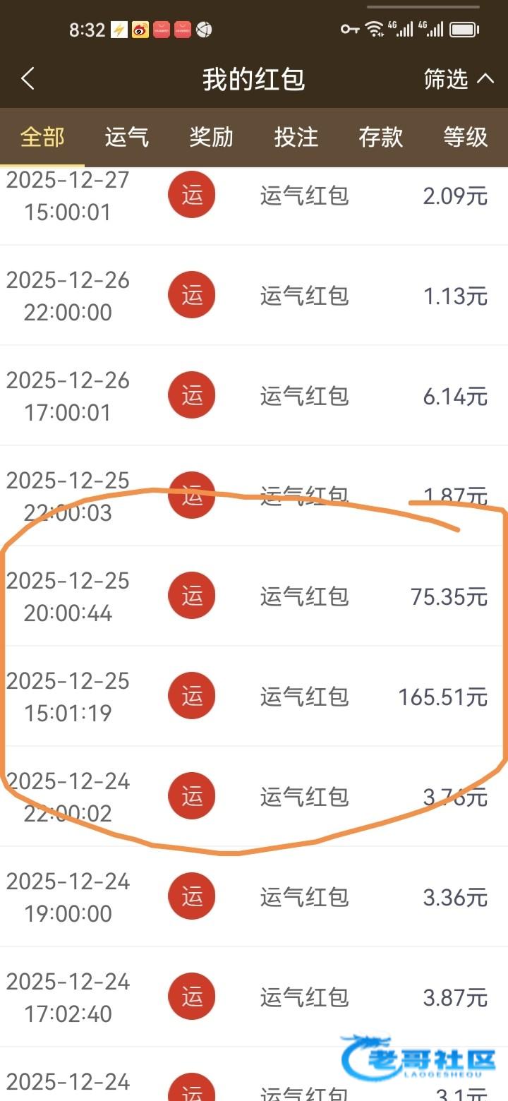 662红包从没低于3块,其他的没超过3块,227逢年过节大一点