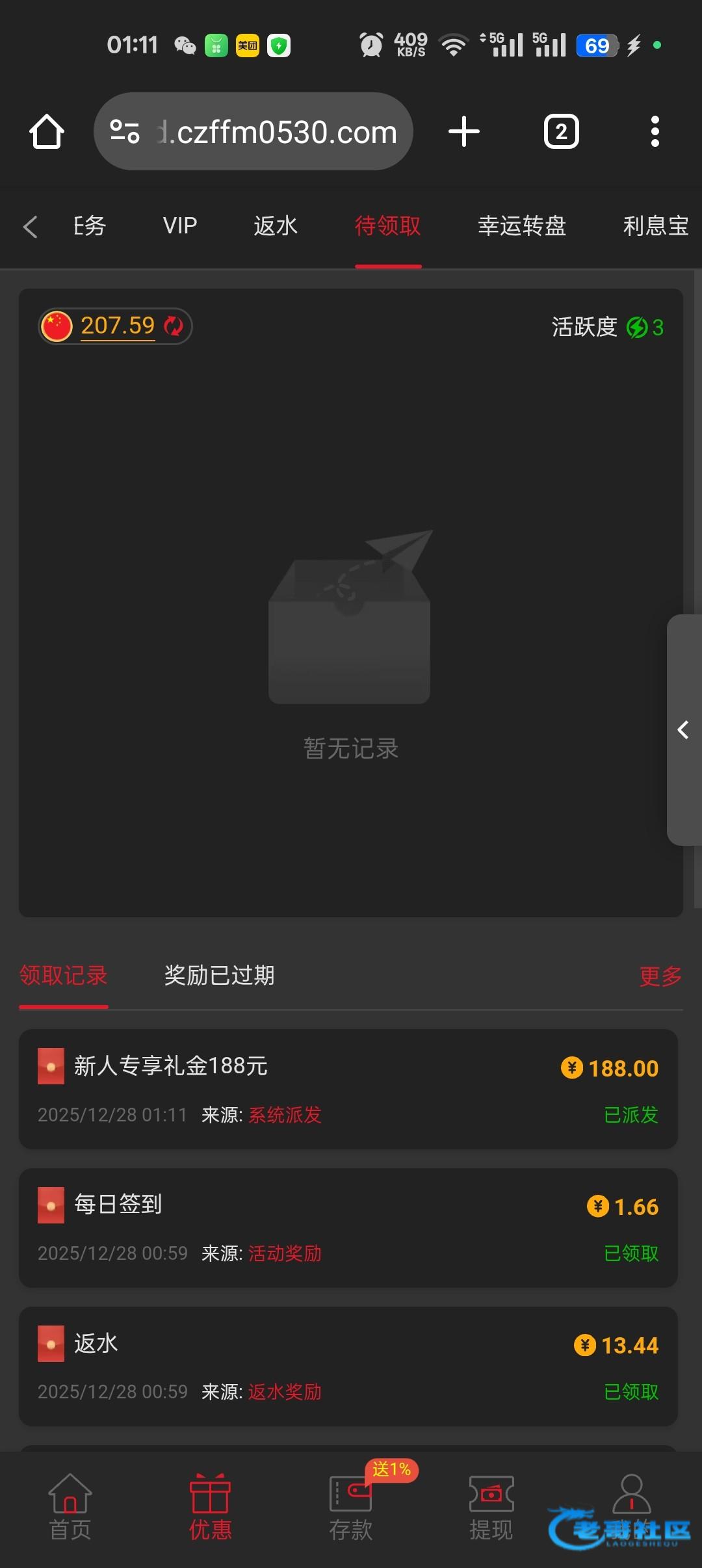 点错了,又有个网送了188