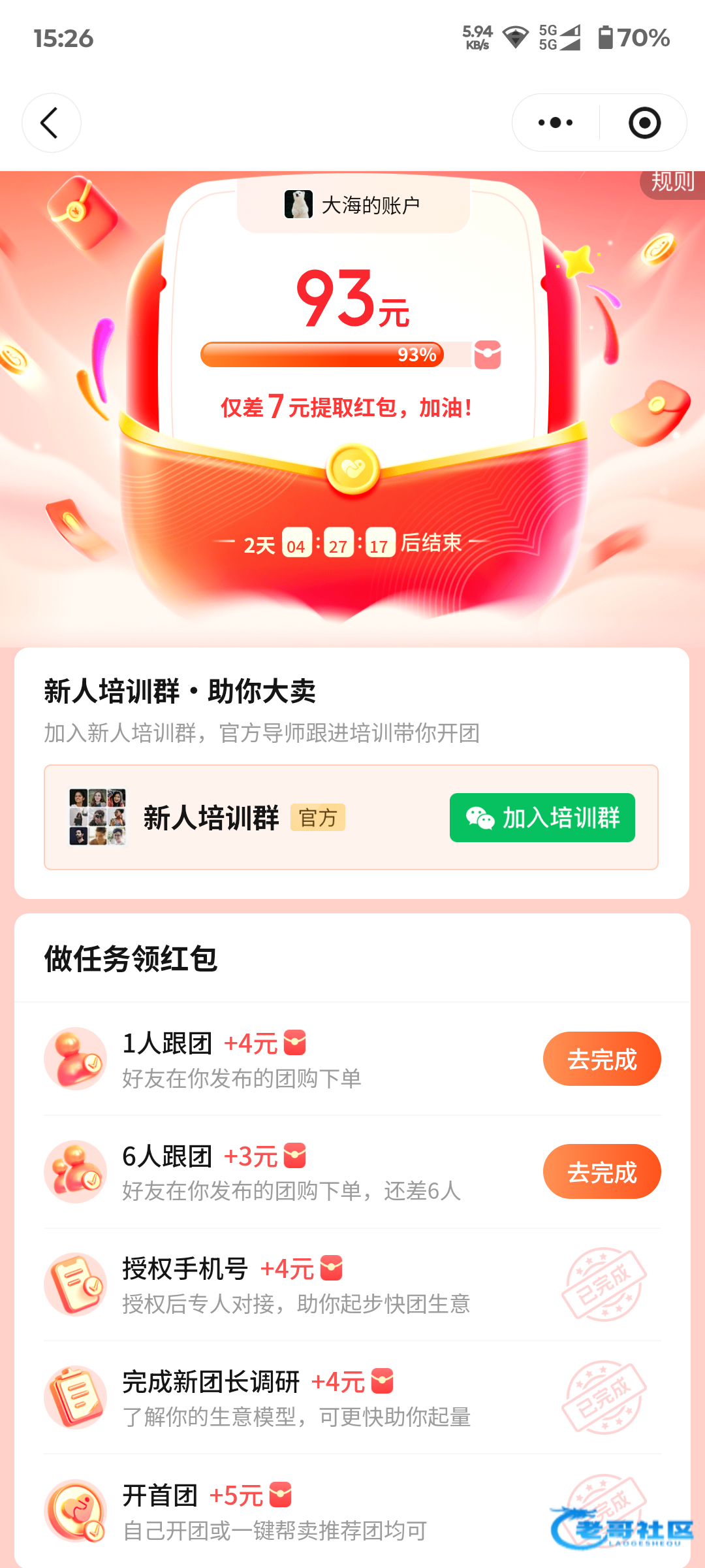 新团长还能找人撸100,发个0.01的团购让人下单就信了