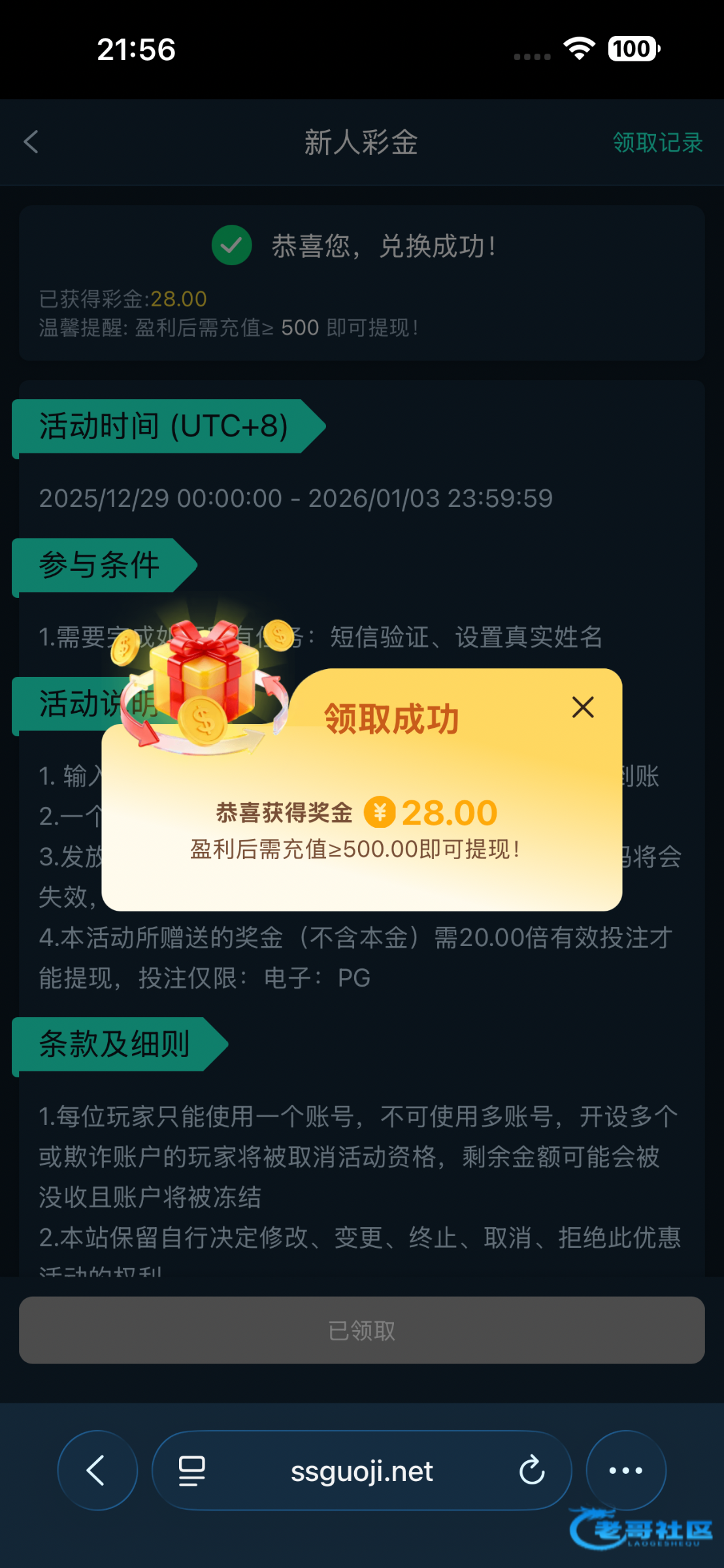领到了,谢谢老哥