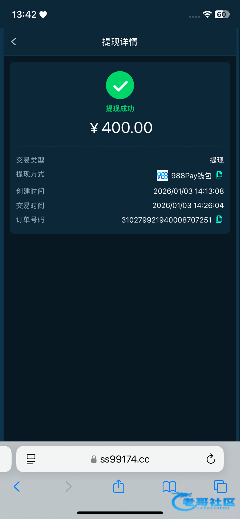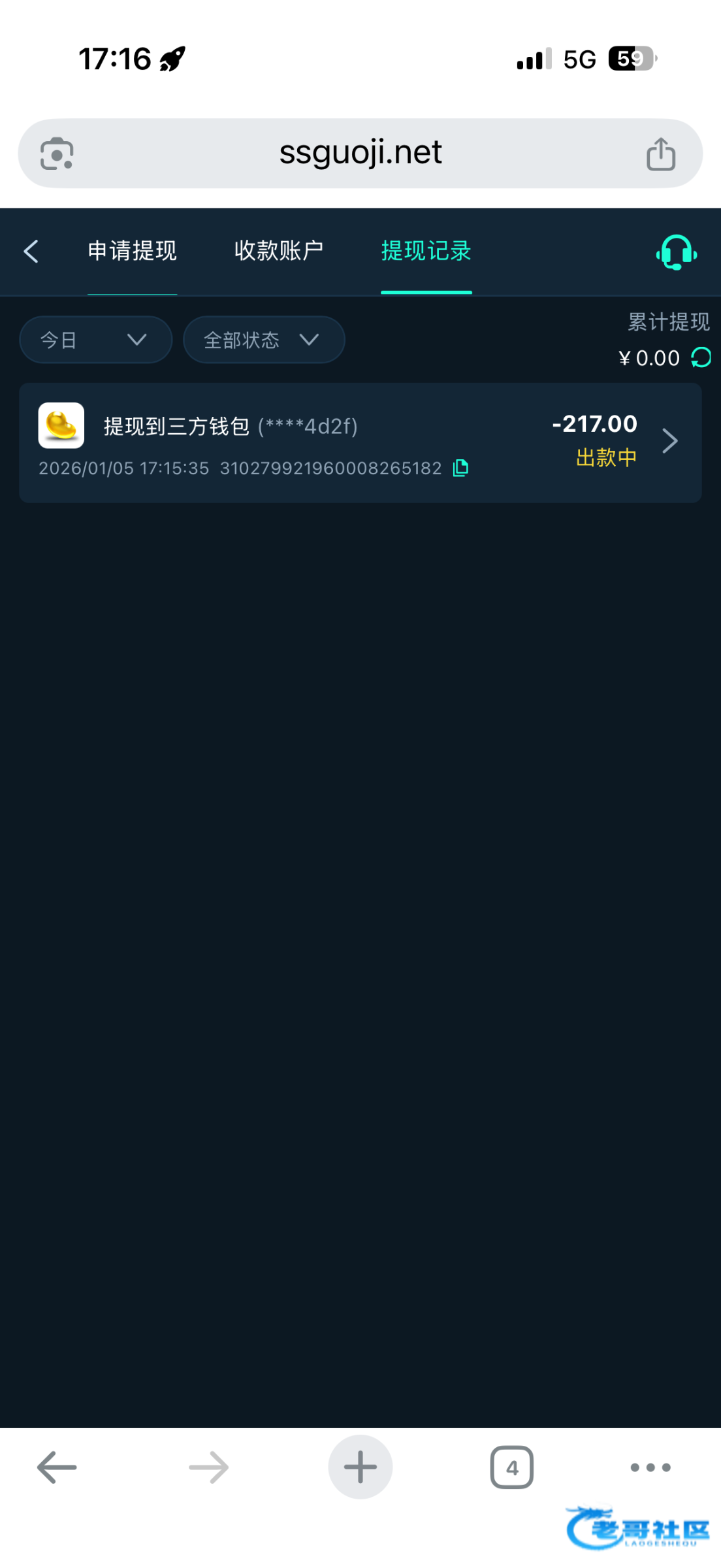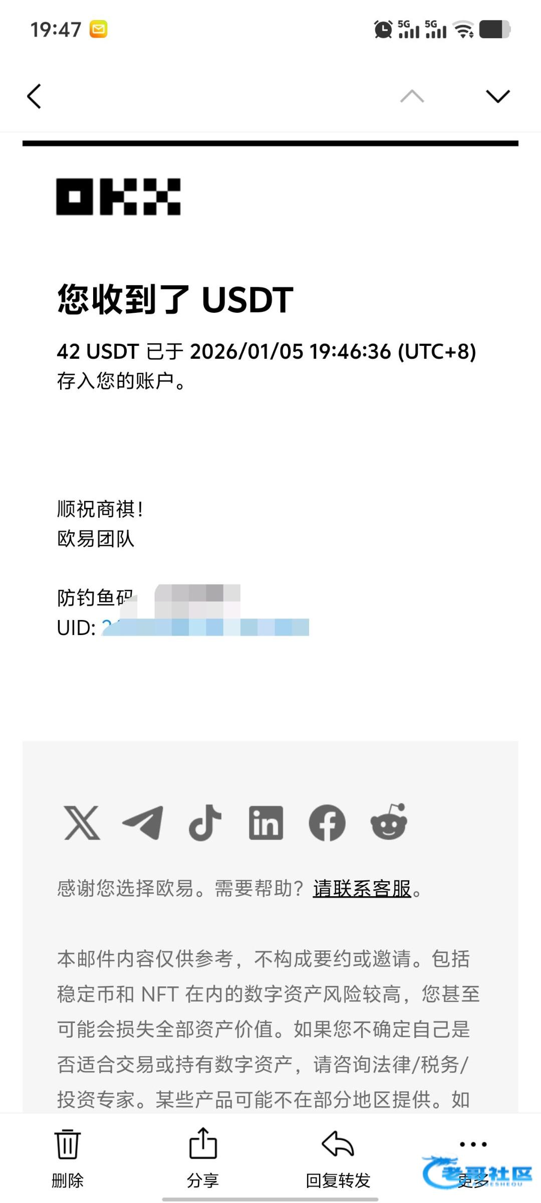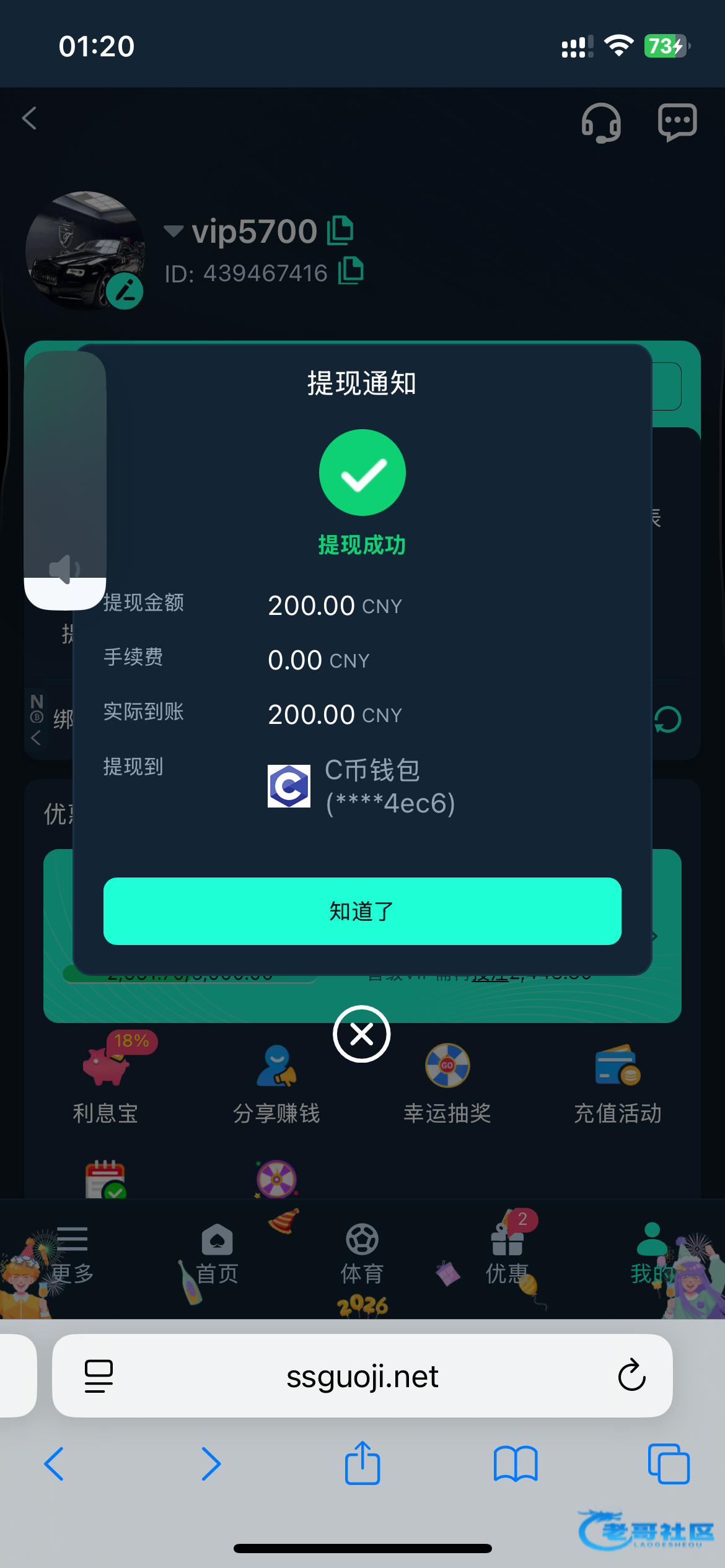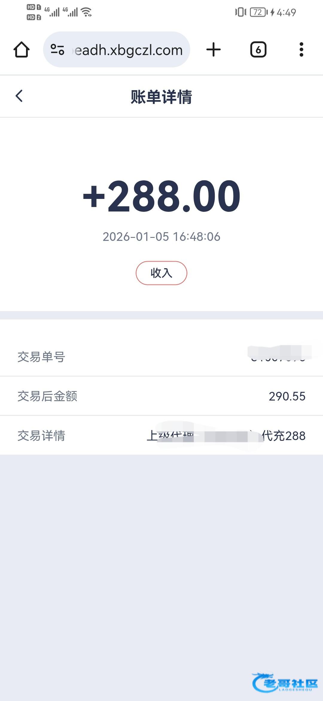收到老哥返现