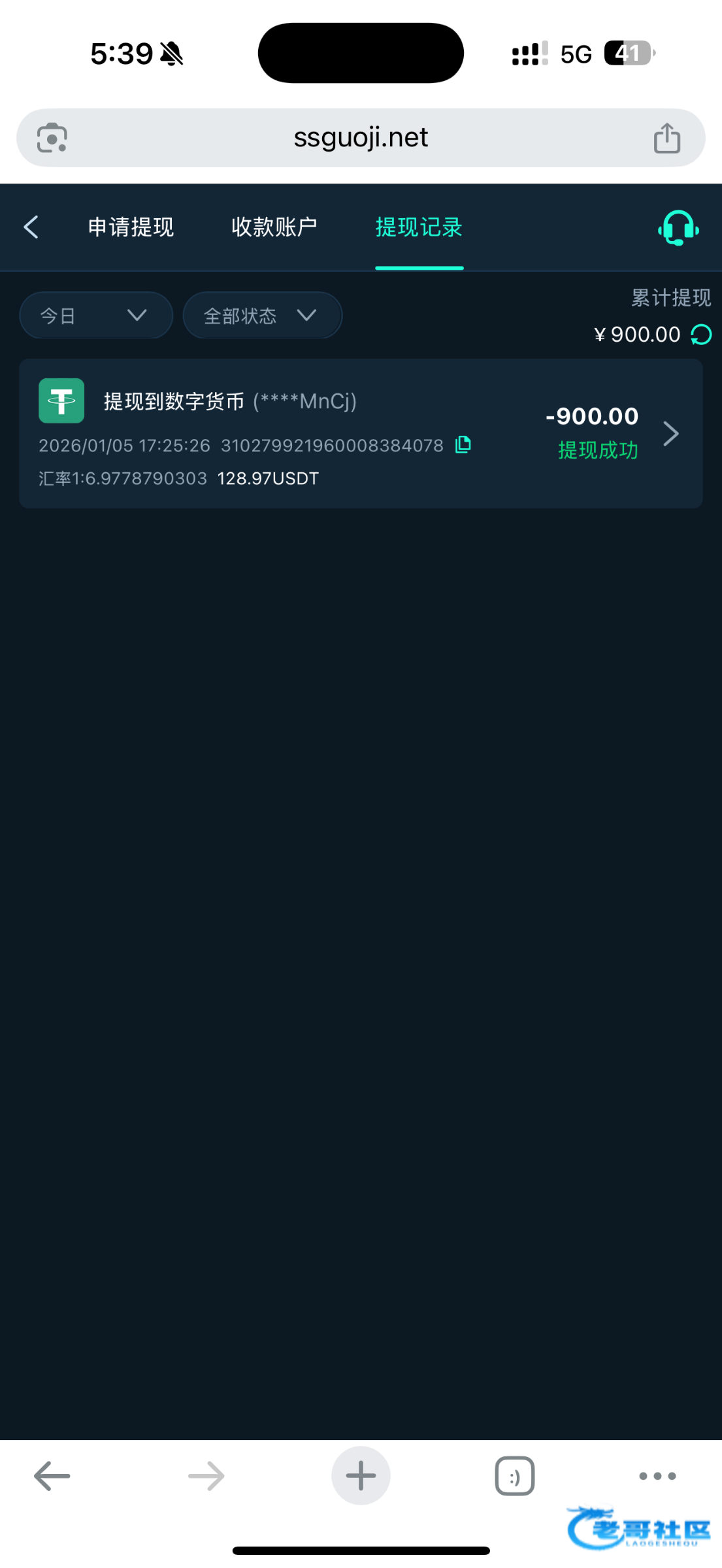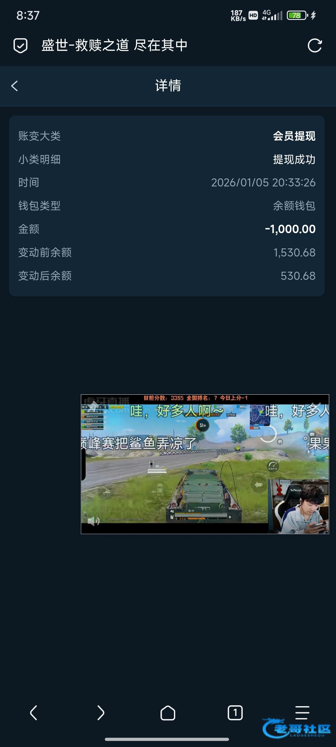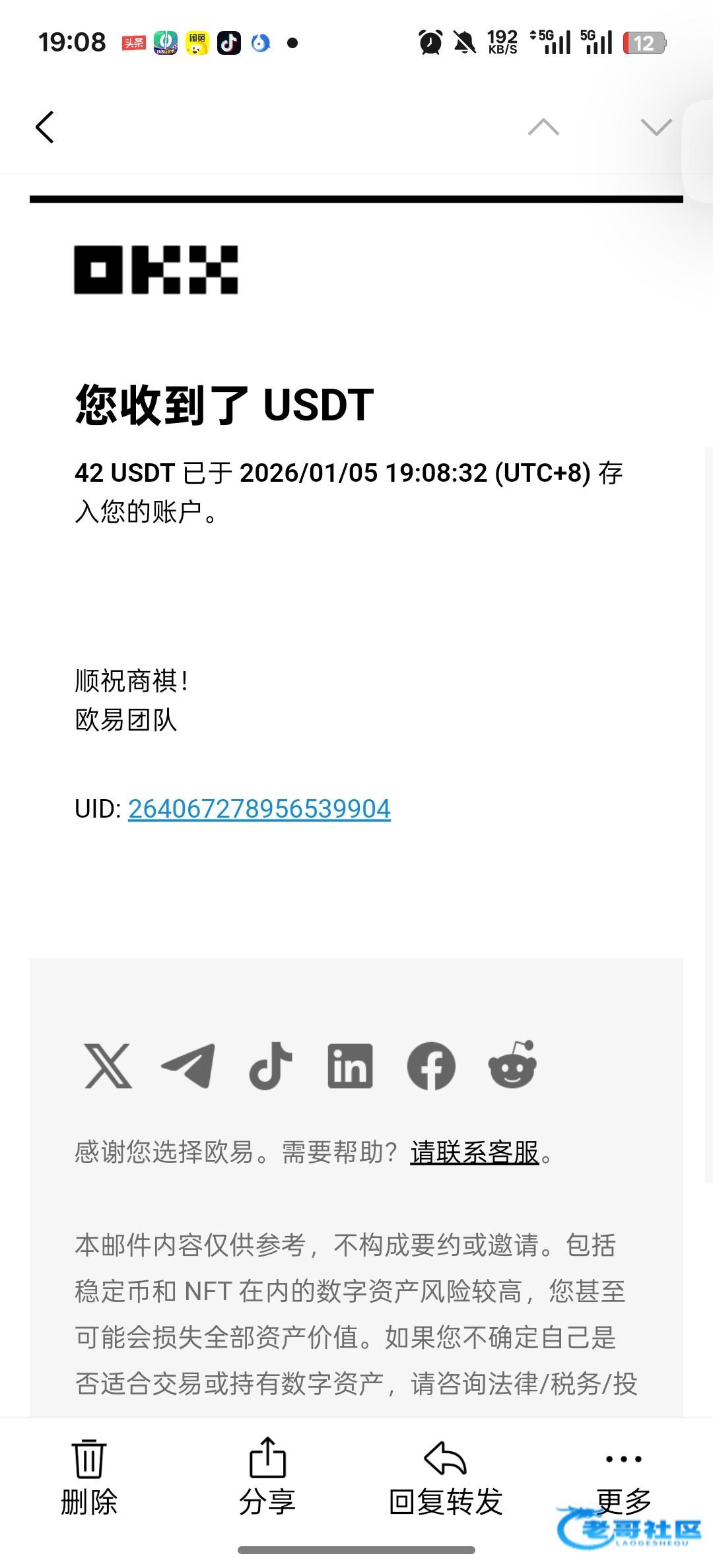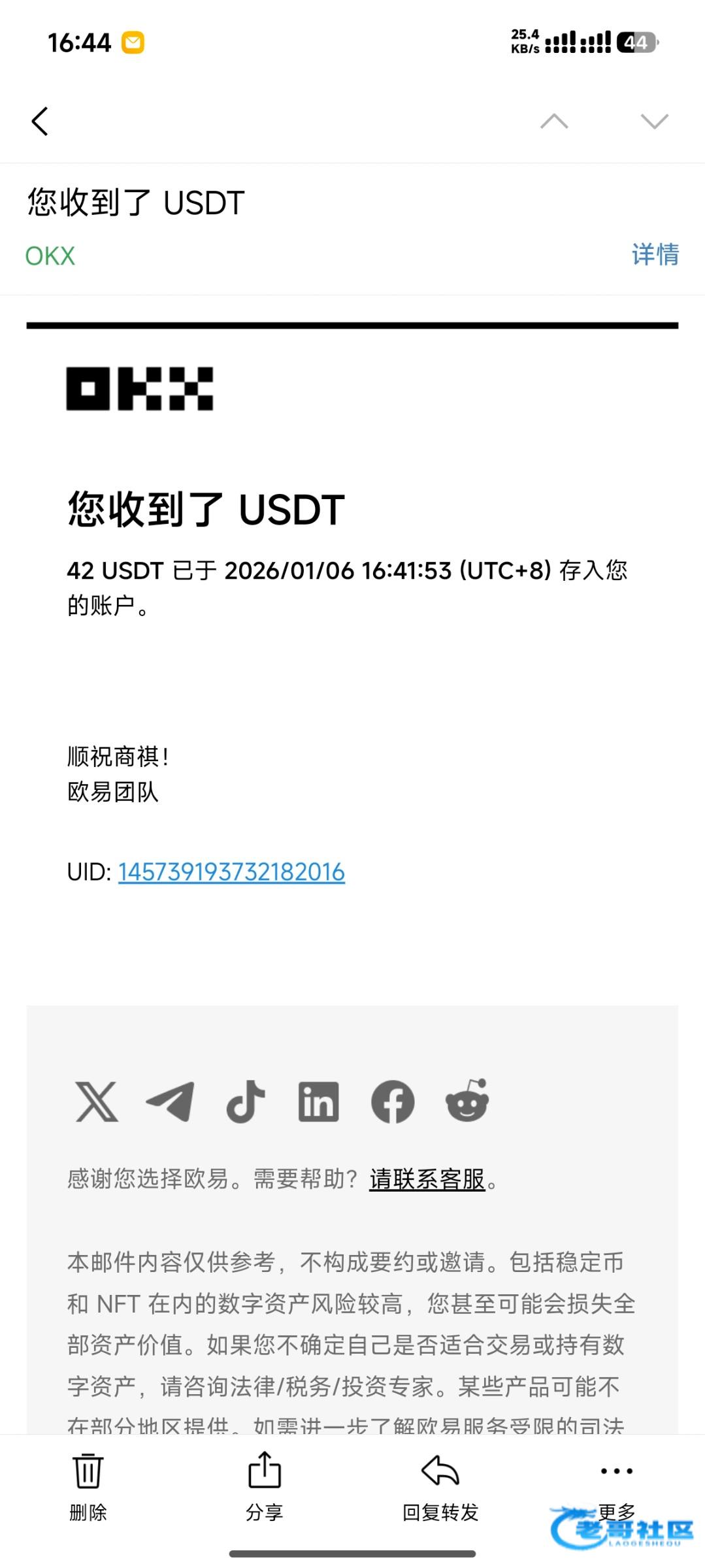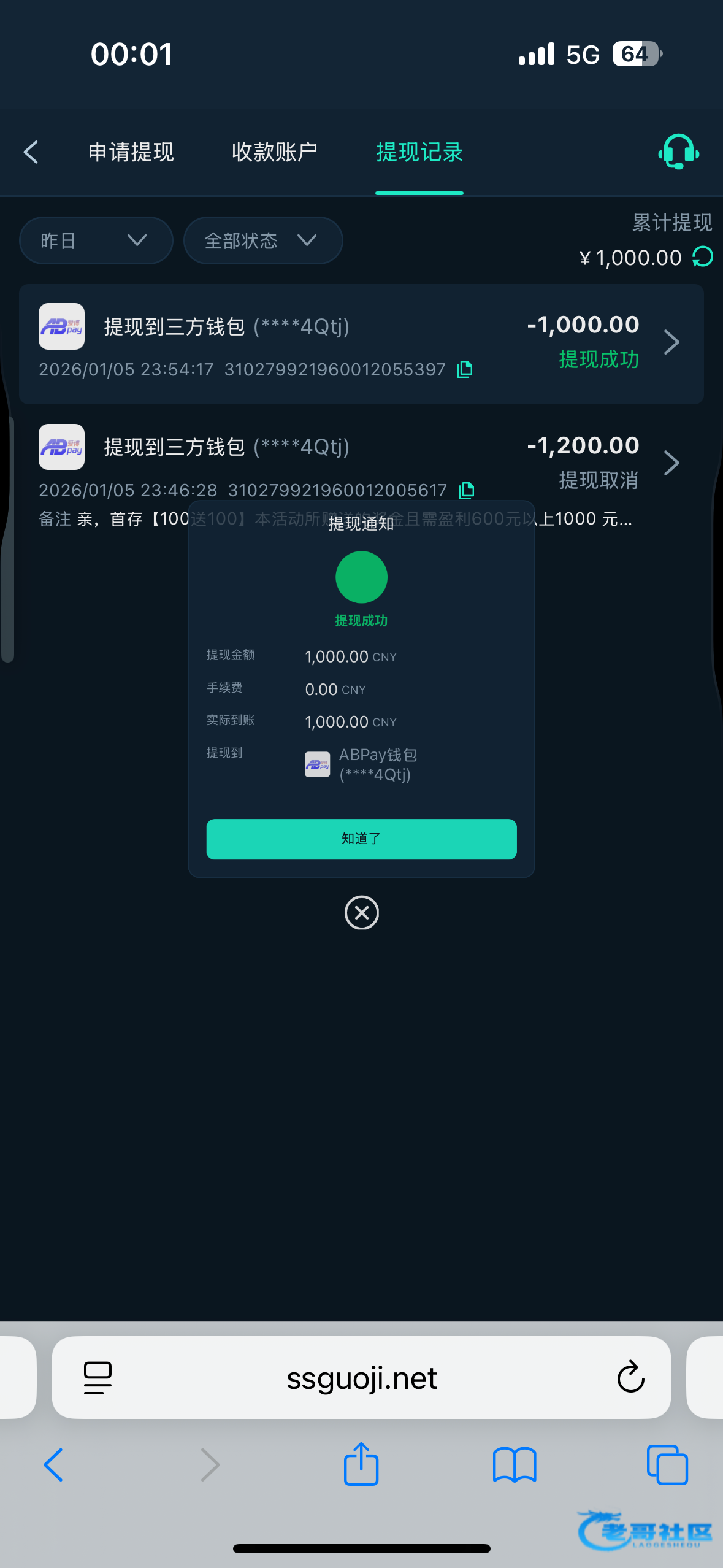 收到老哥返现