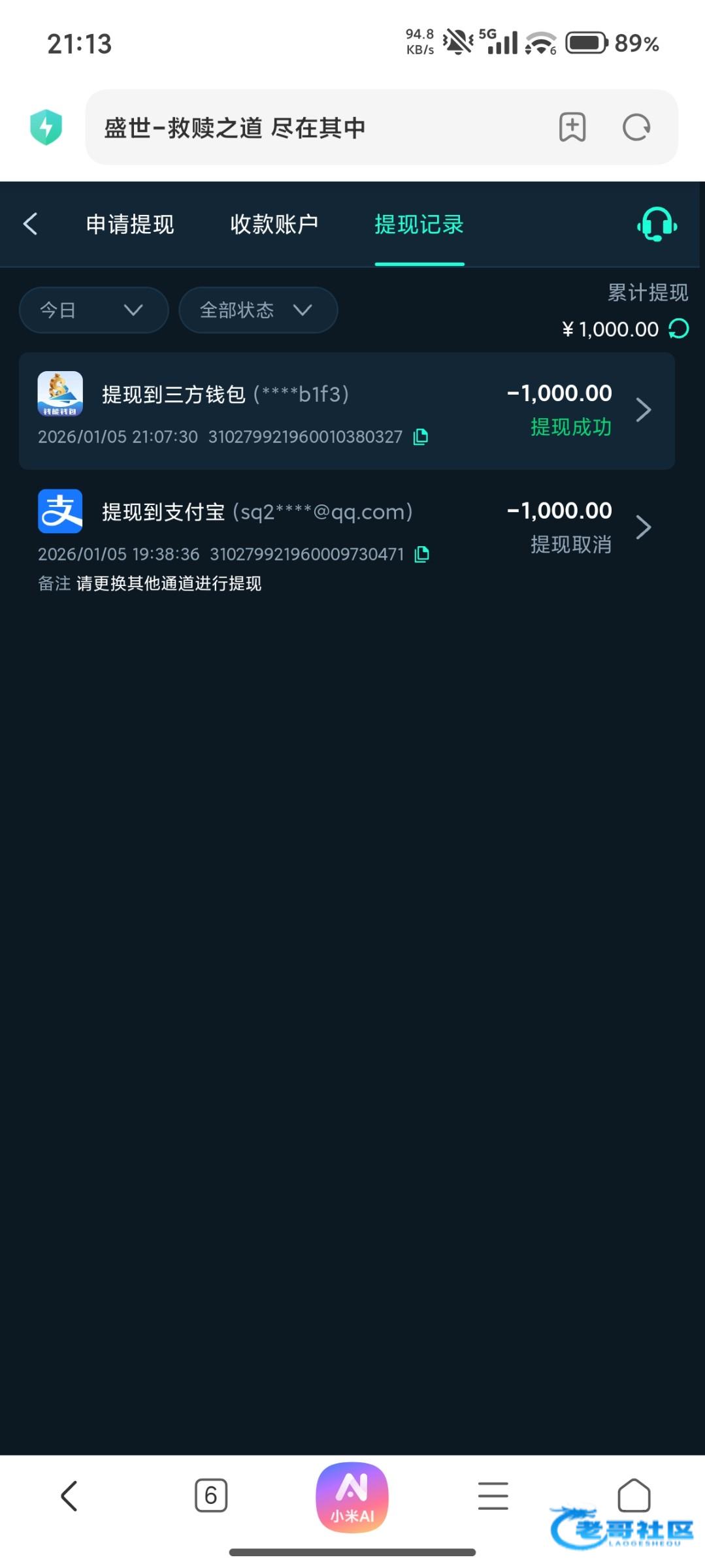 277813804 申请提现彩金