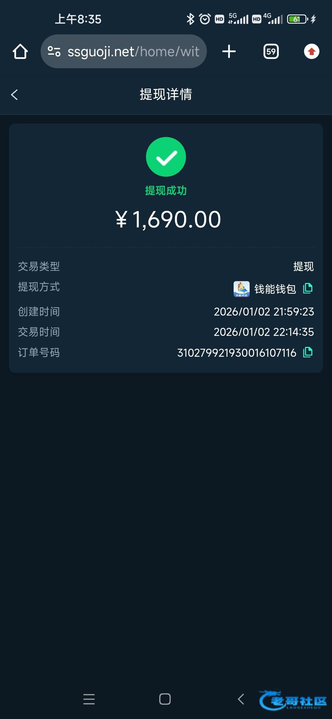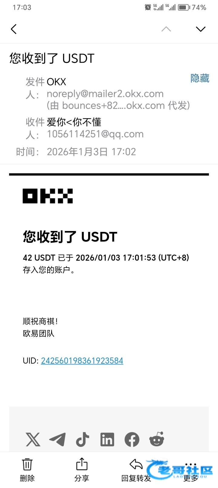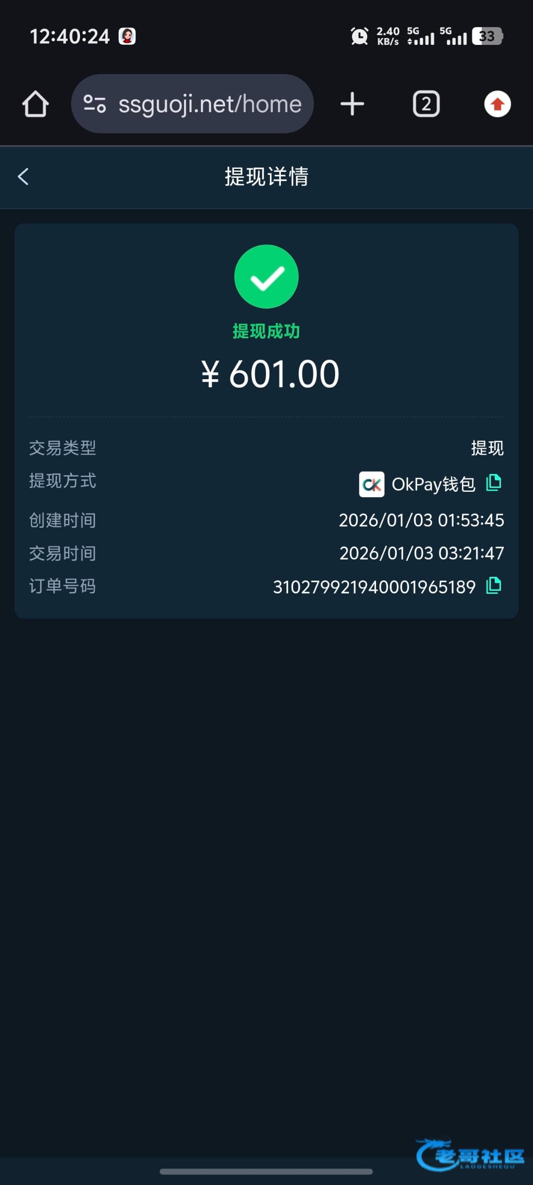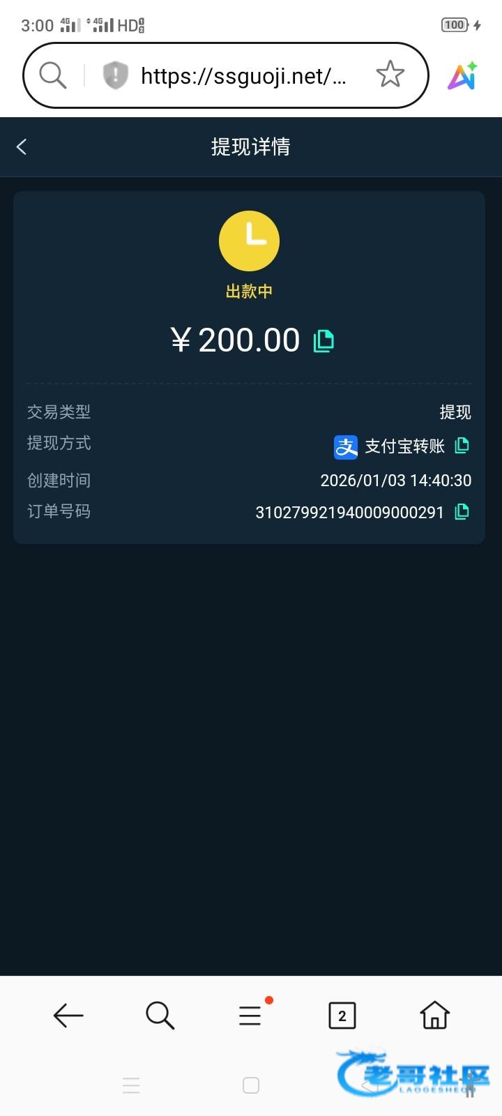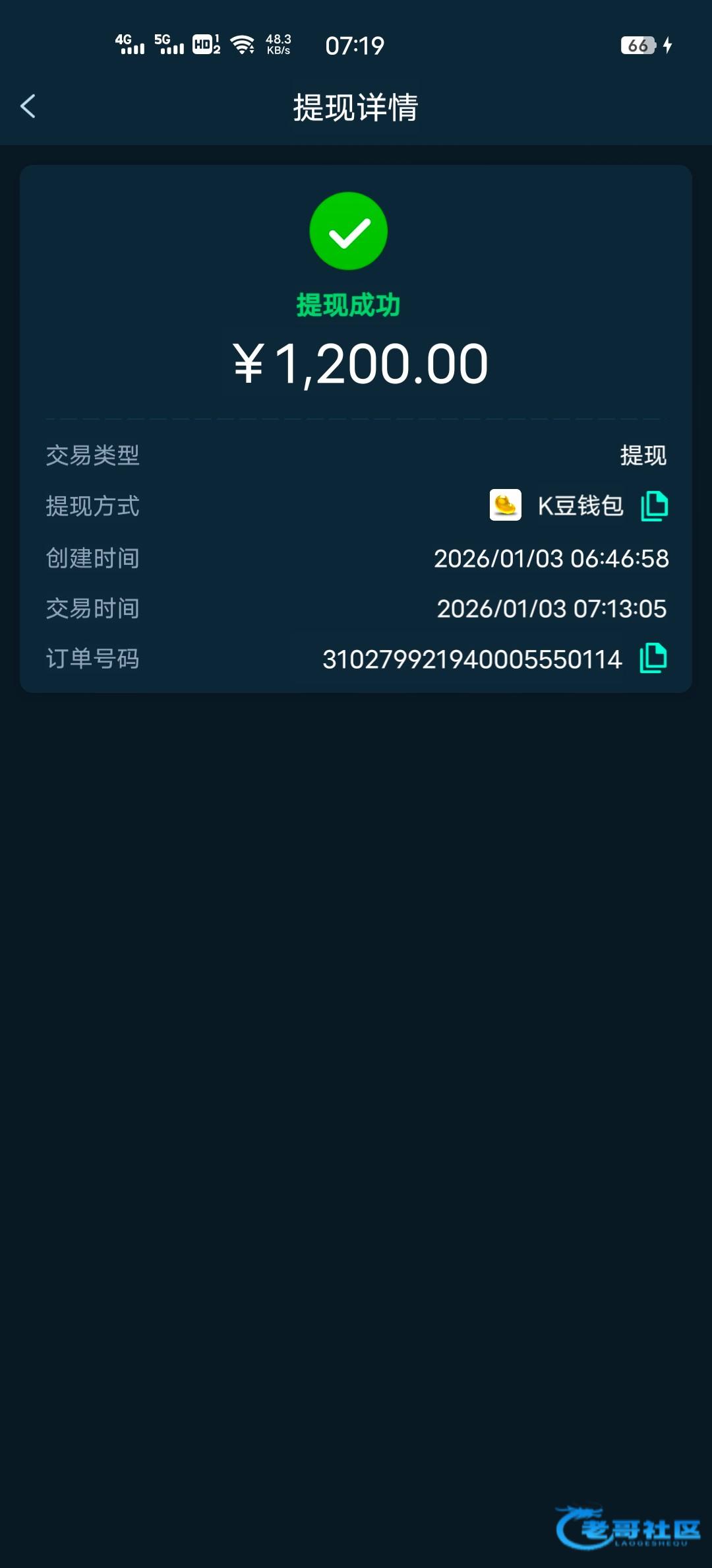 收到老哥返现,老哥稳