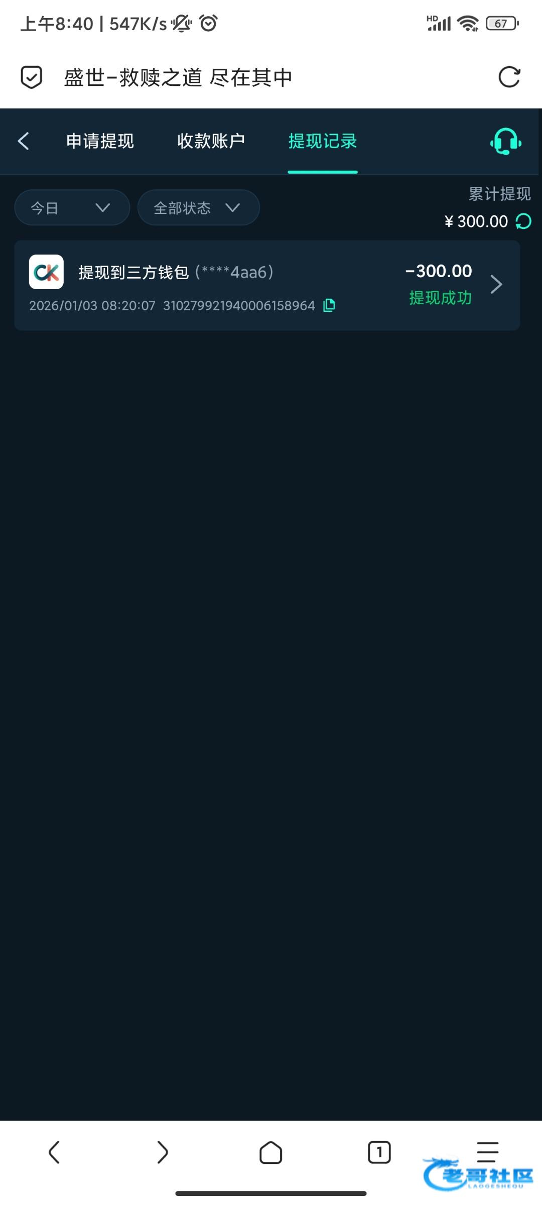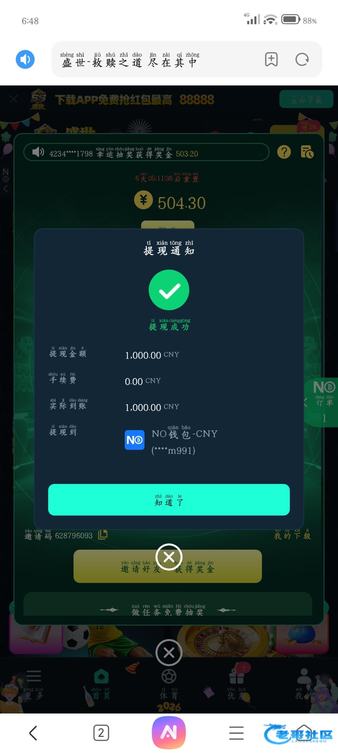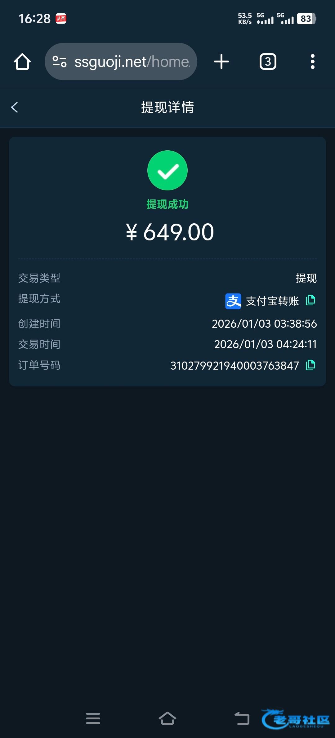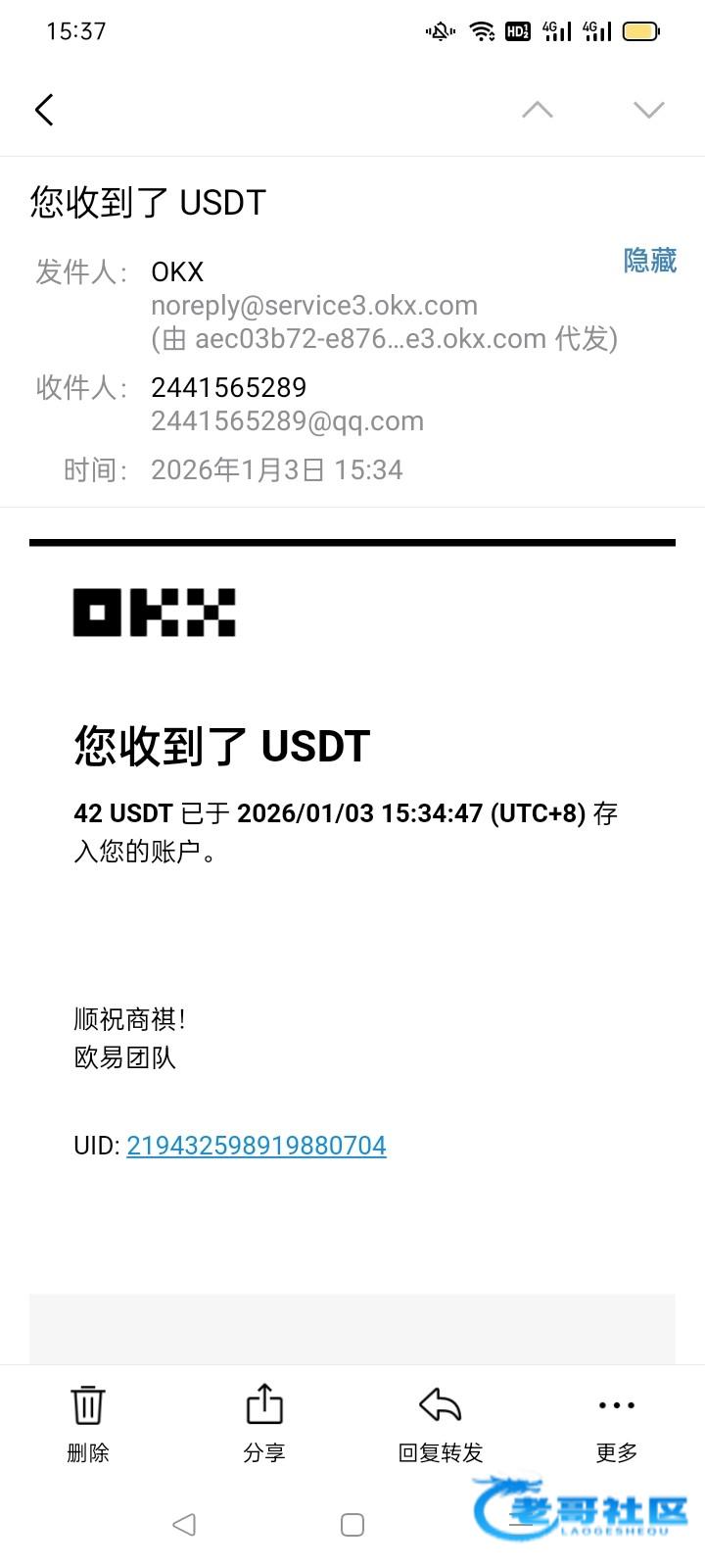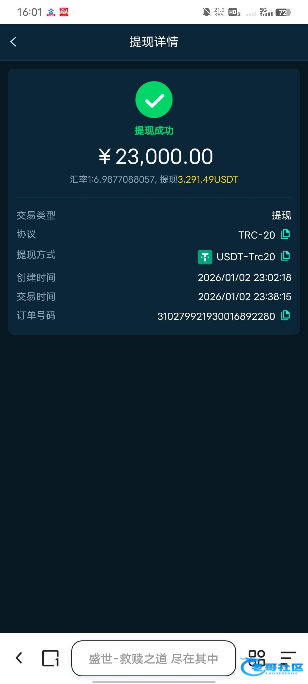 收到老哥返现,老哥稳