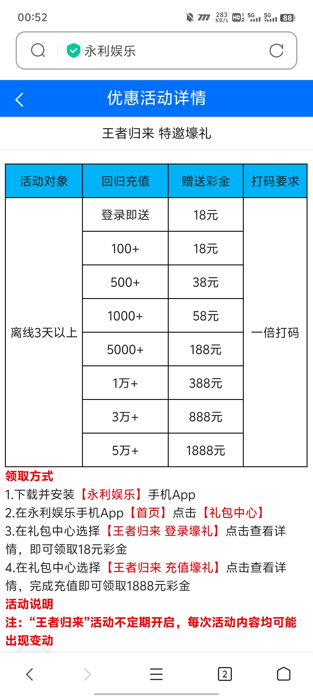 首页礼包中心三天未登录送18彩金!
