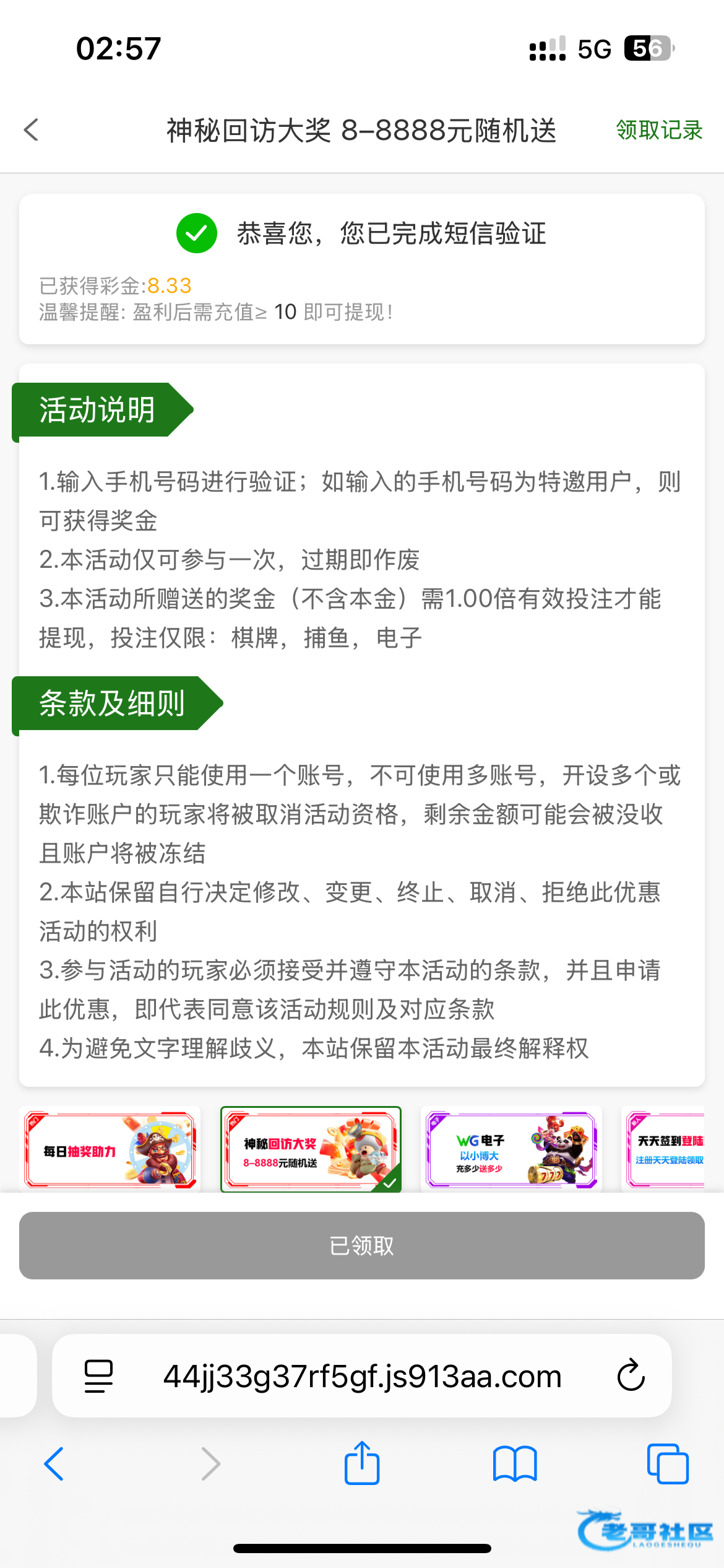 913.am,自助回访,我领了没打出来,打出来要充10,屌大的朋友上